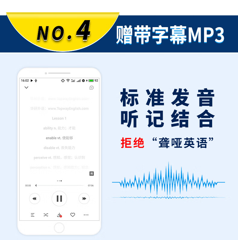 5. 每课词汇均配有带字幕的MP3录音文件,帮助纠正发音,内化单词,将其变成能够听得出来的词汇。