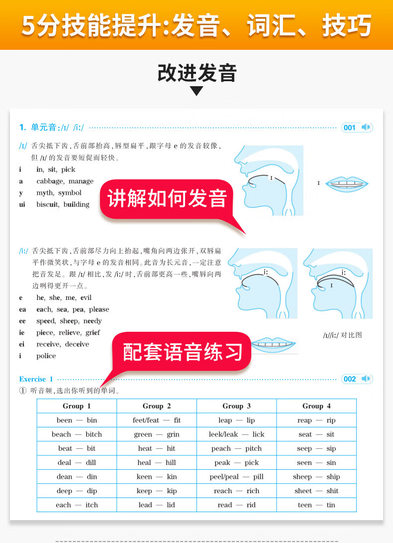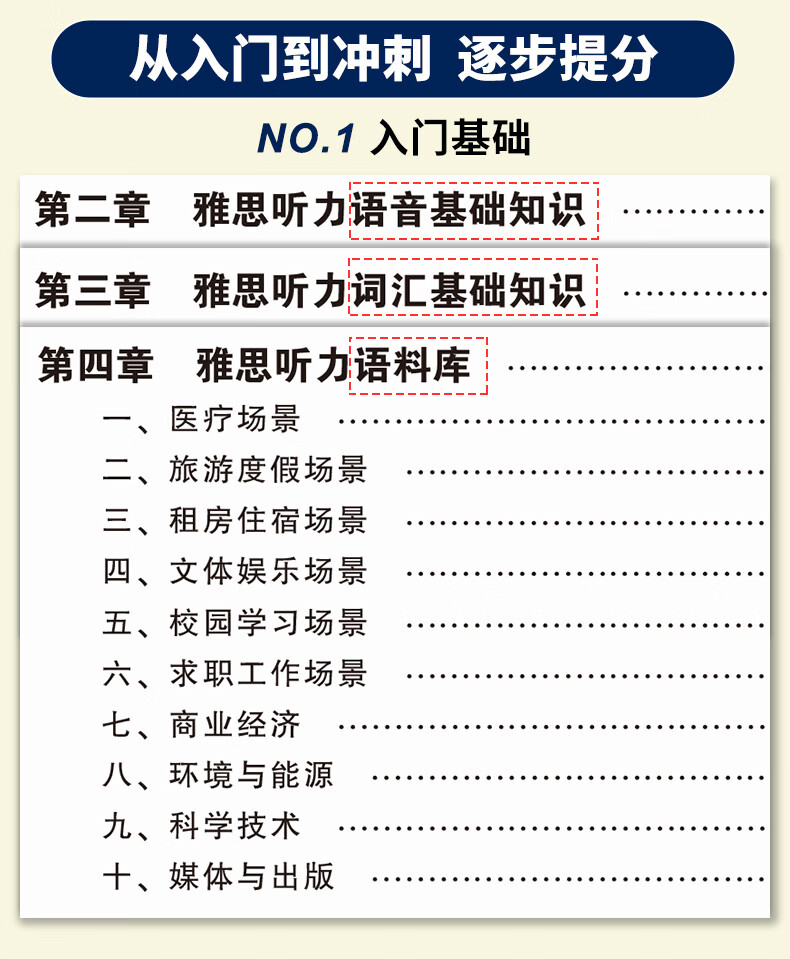 1. 雅思口语入门语音和词汇知识+针对性练习;