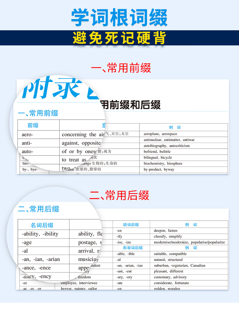 2. 核心词汇按重要程度分课精讲,每课归纳常见词根词缀,科学串记,背单词更有效;