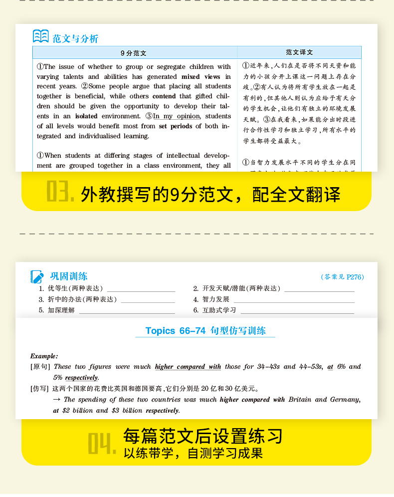 5. 所有范文均出自外教之手,语言地道,简洁易懂,杜绝中式英语表达以及生硬的模板句型。