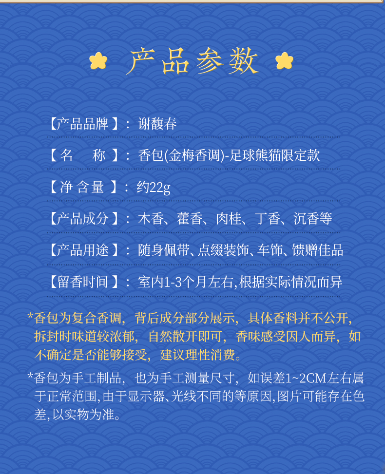 足球熊猫限定香包 腊梅(金梅)香调