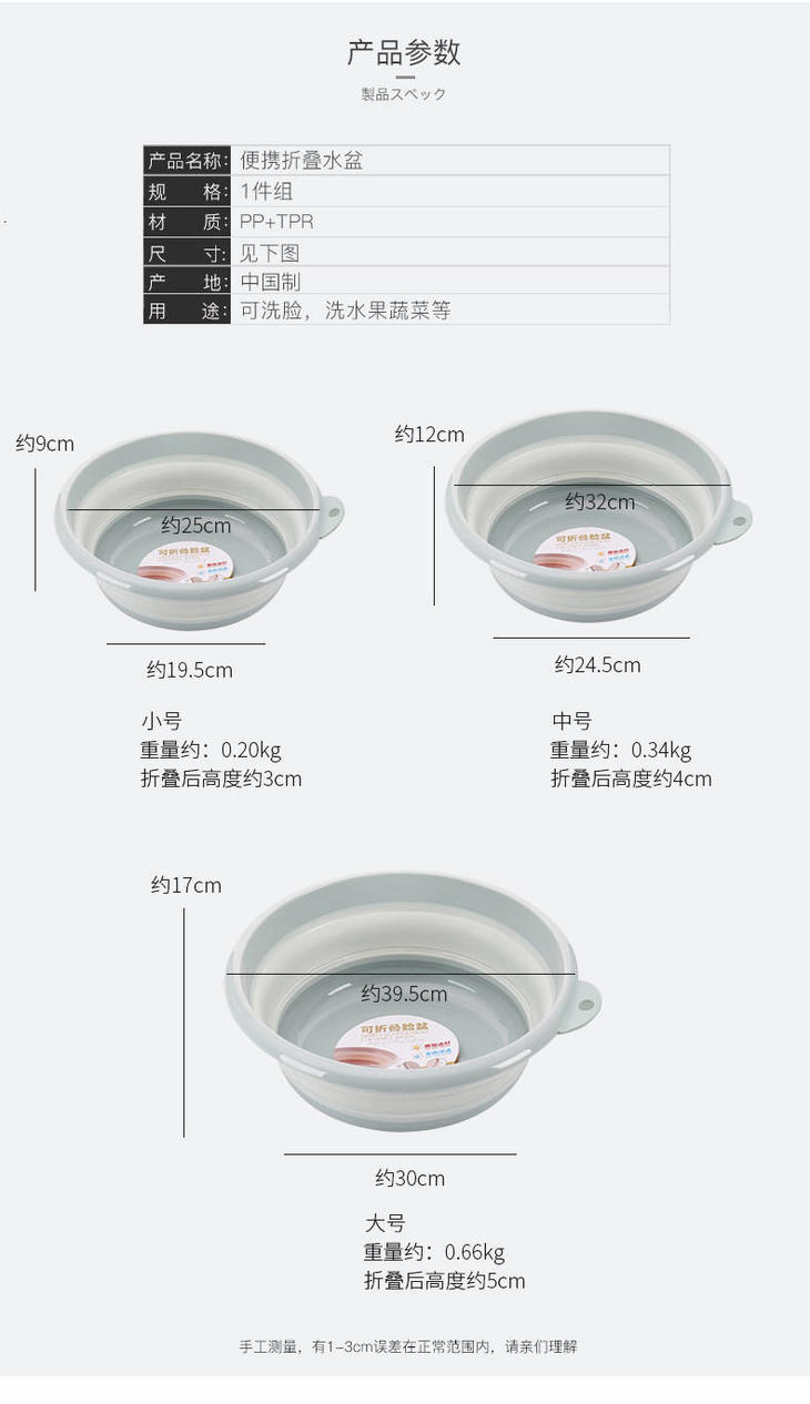 节省空间 日式旅行折叠脸盆 户外便携式水盆【20*8.5cm】