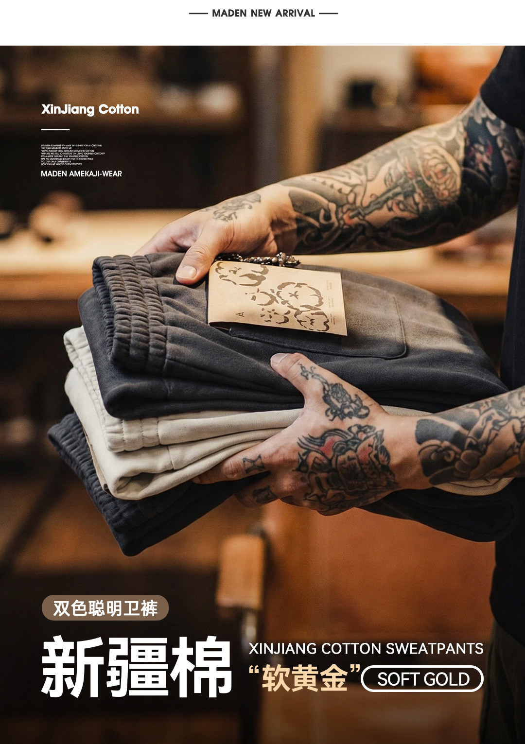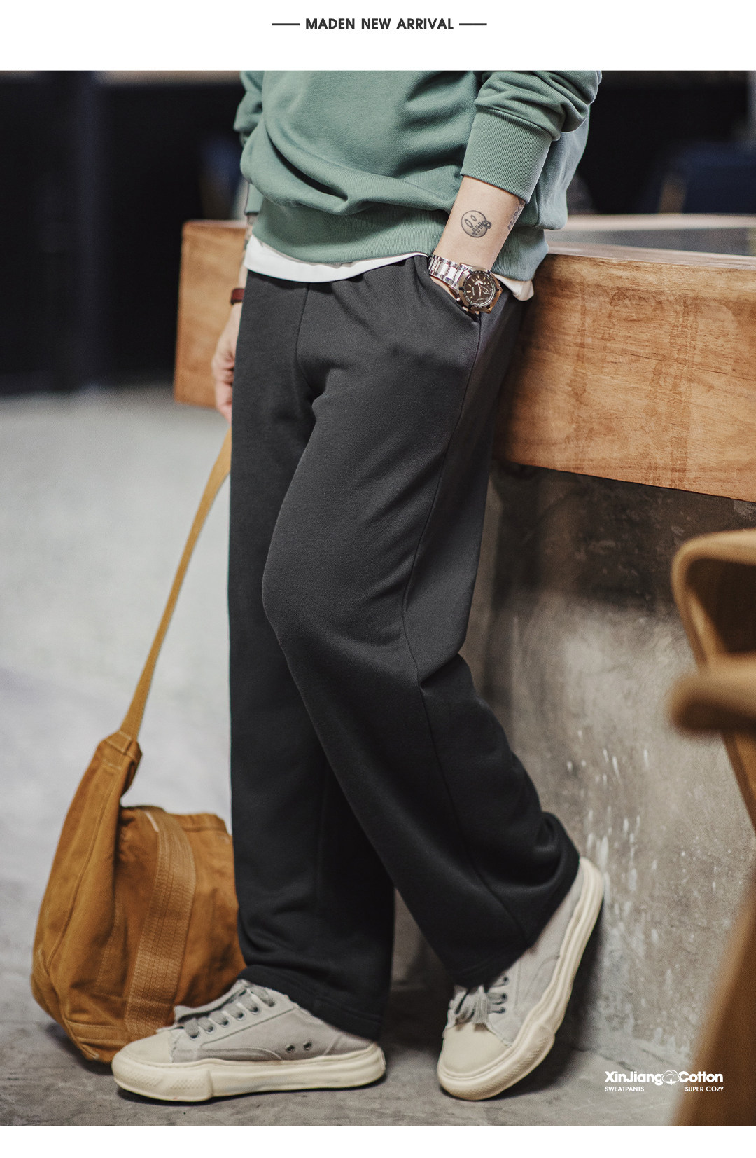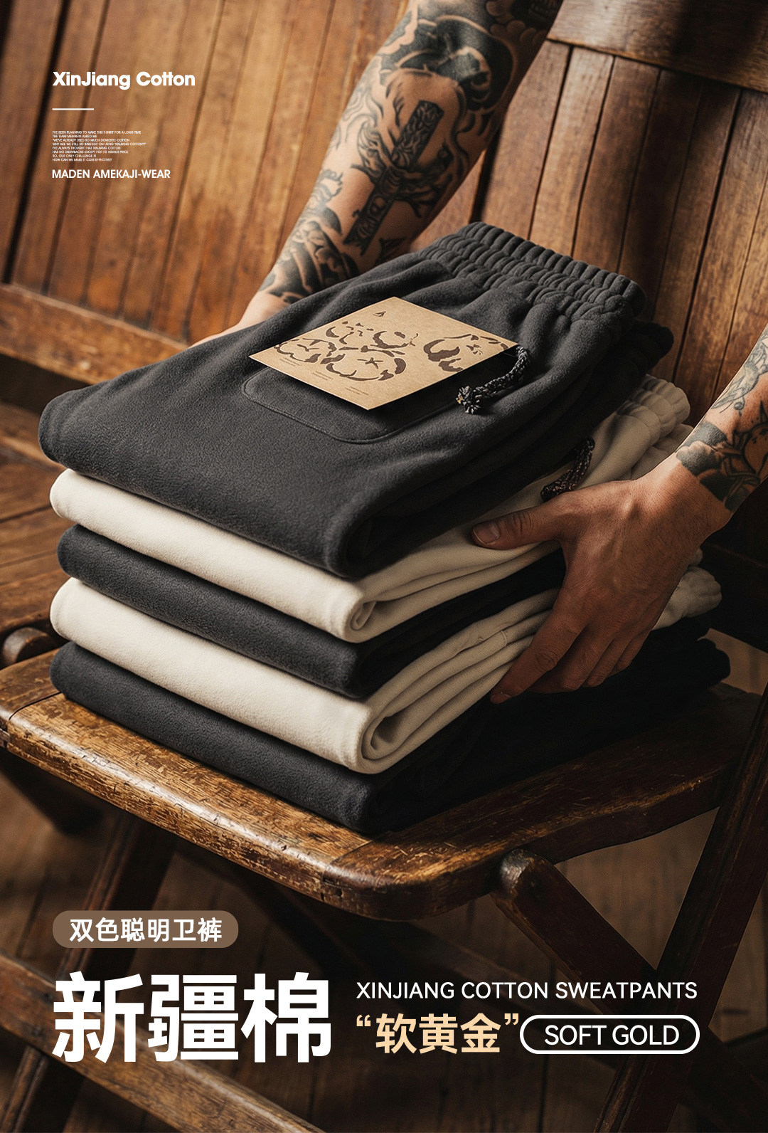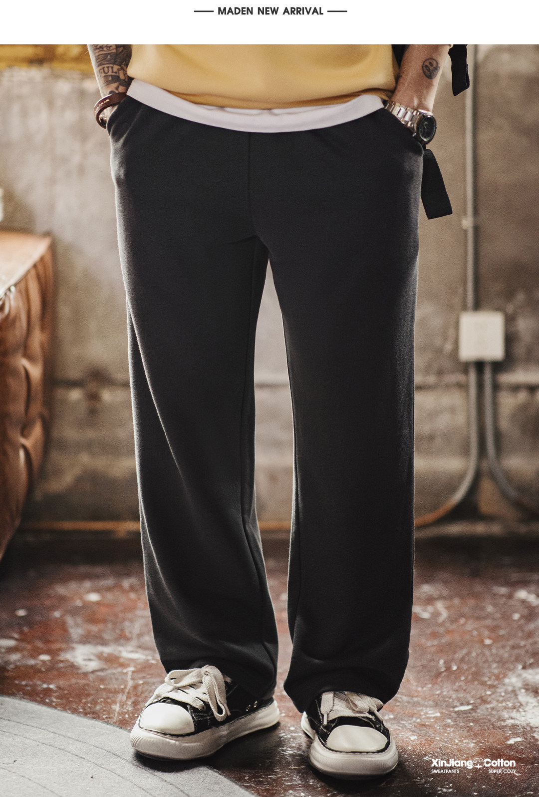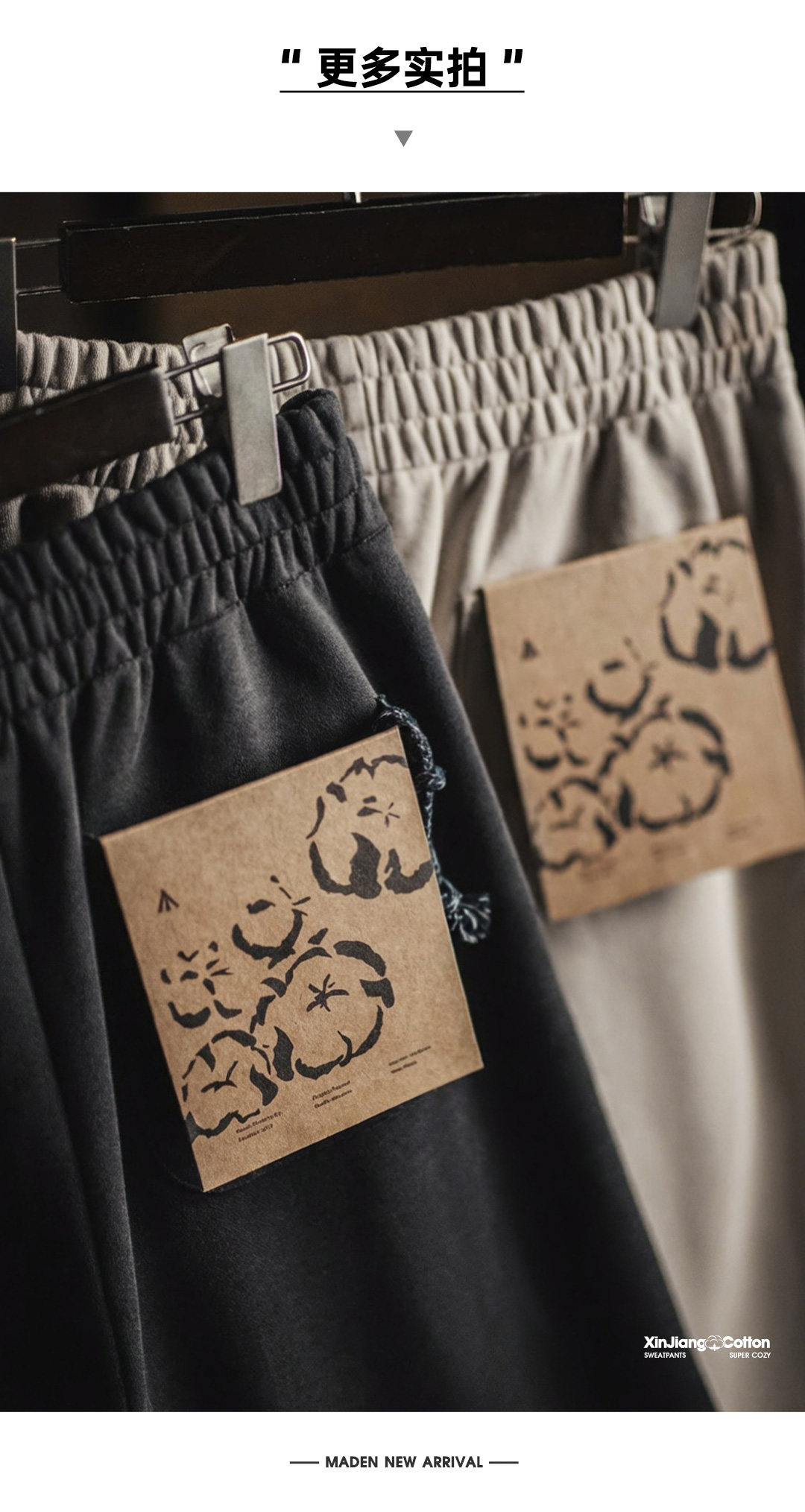 马登工装美式新疆棉卫裤直筒宽松灰色垂感运动休闲长裤子男士春
