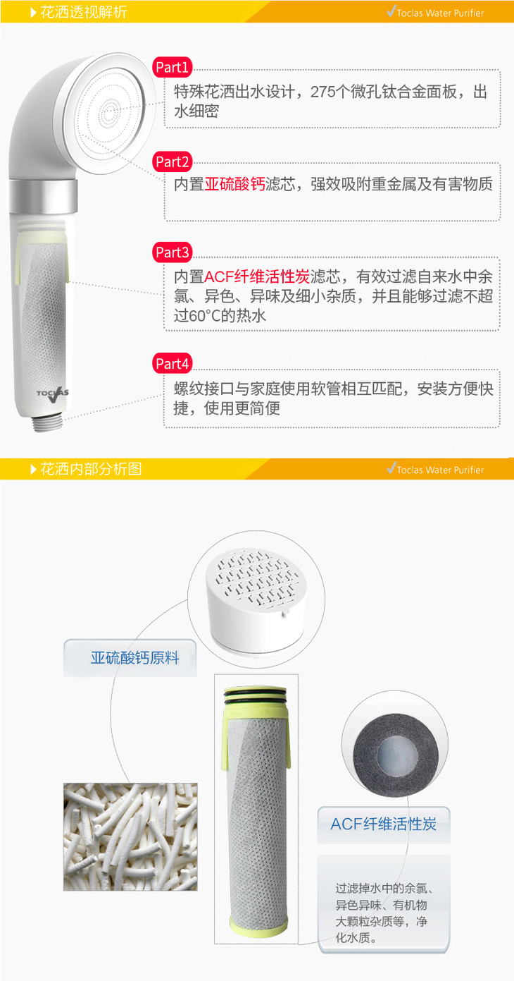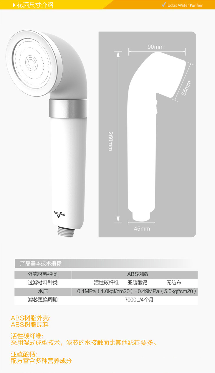 TOCLAS托客乐思美肤宝净水花洒滤芯/亚硫酸钙滤芯F240 滤芯除氯沐浴龙头过滤