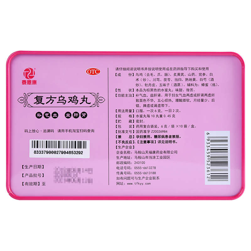 泰恩康 复方乌鸡丸6g*10袋/盒补气血益肝肾面色不华月经量少药品