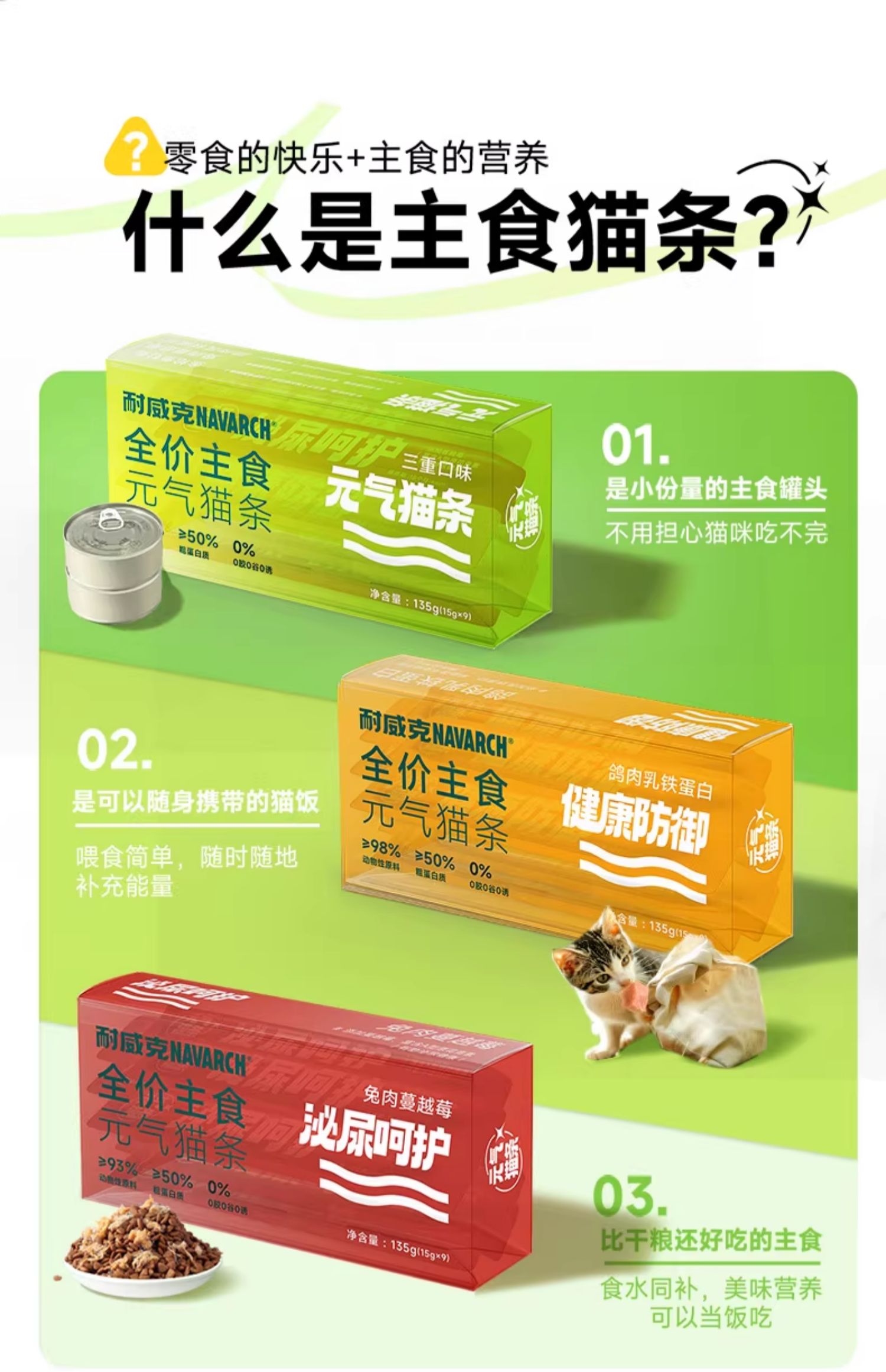 耐威克主食猫条|猫咪成猫幼猫咪|互动补水湿粮|宠物喵营养|增肥发腮