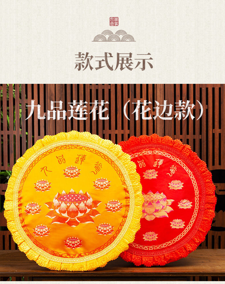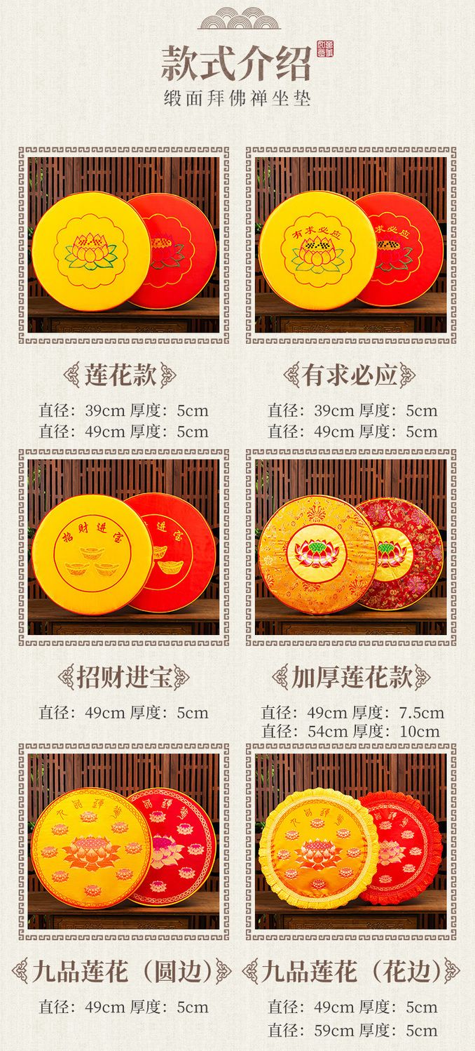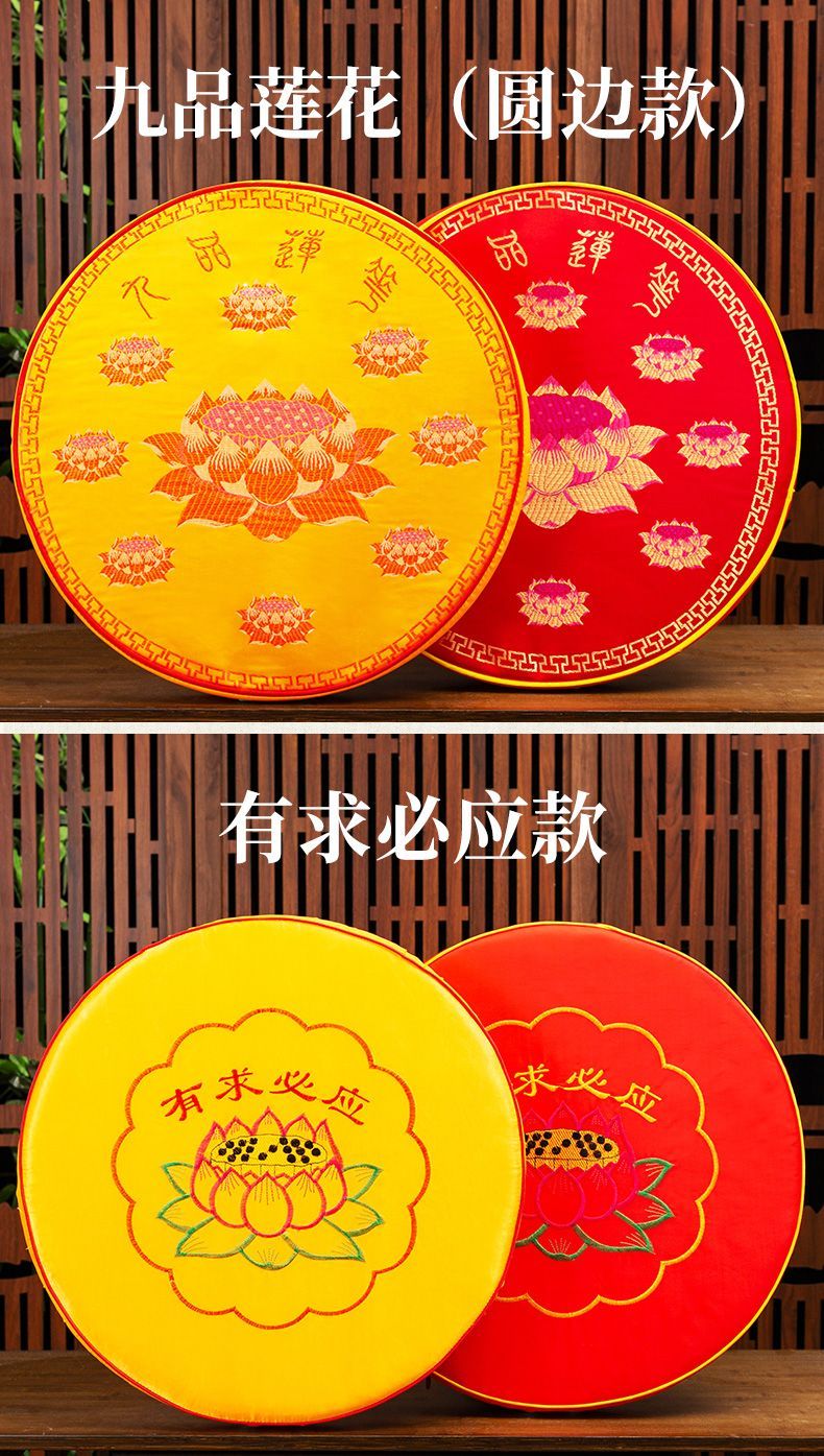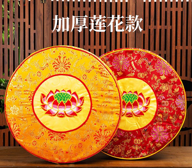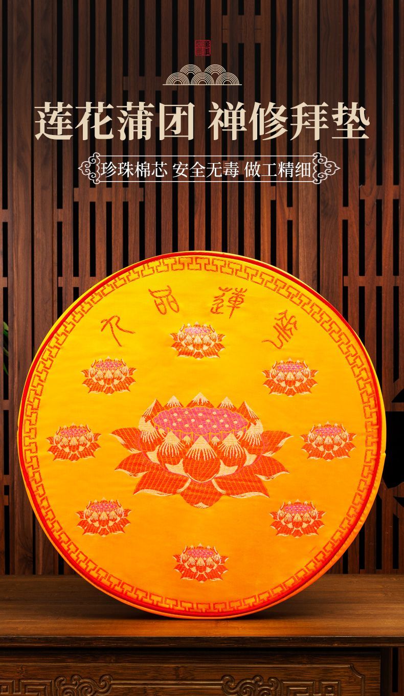 莲花拜垫圆形蒲团打坐垫拜凳佛堂家用拜佛垫亚麻印花蒲团跪拜圆垫