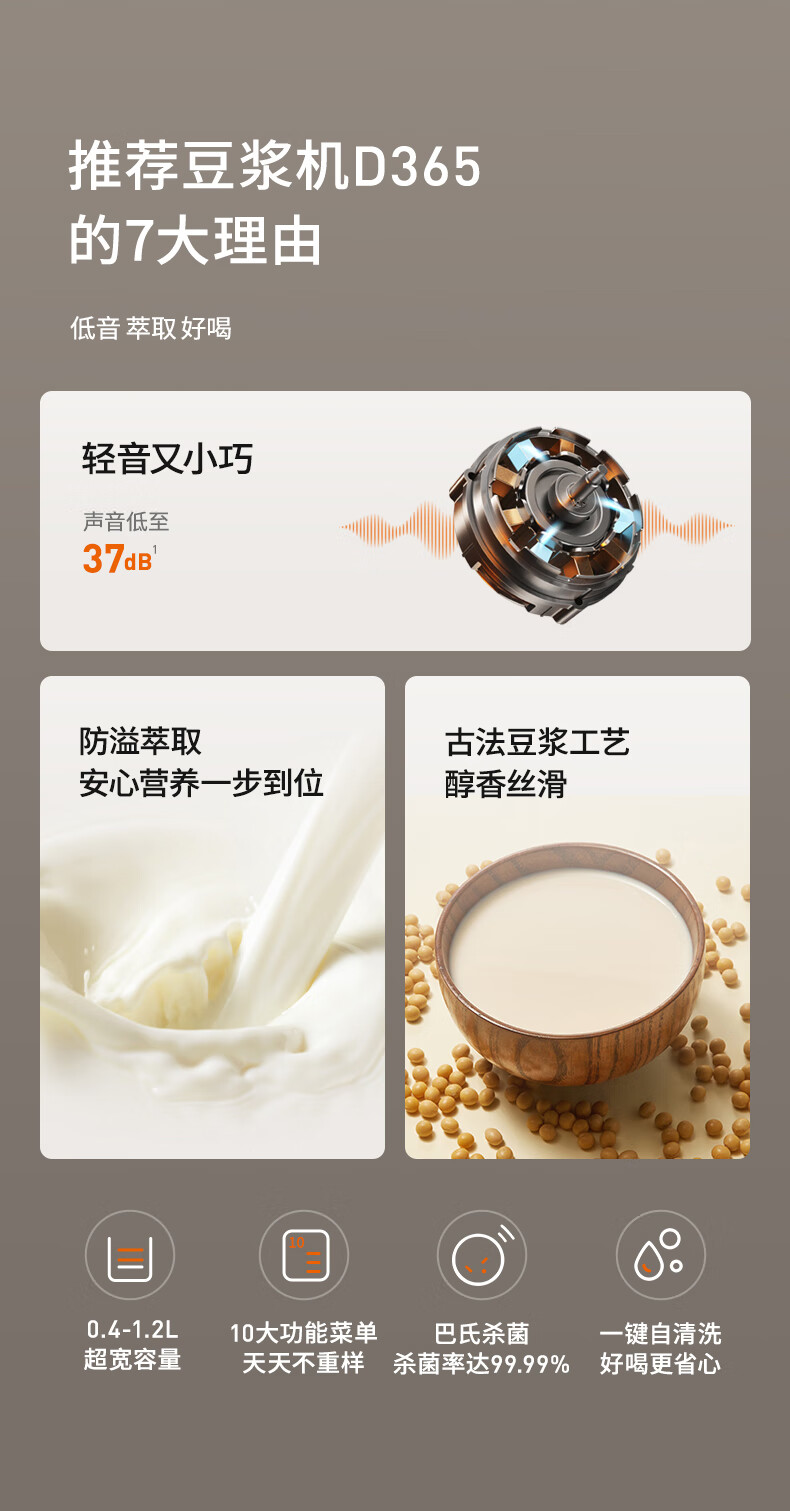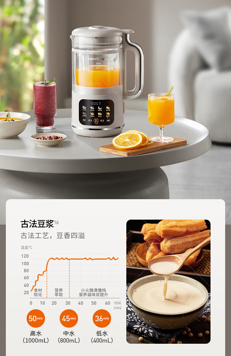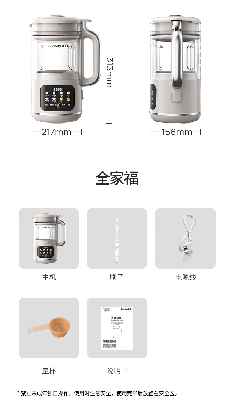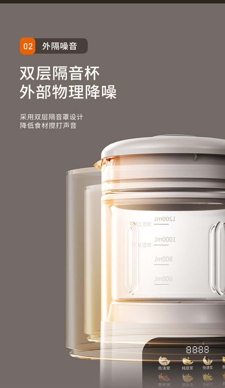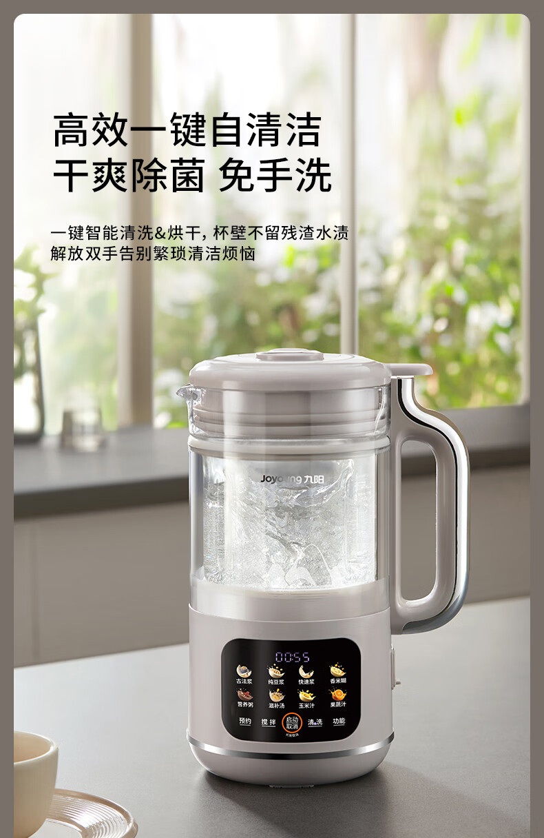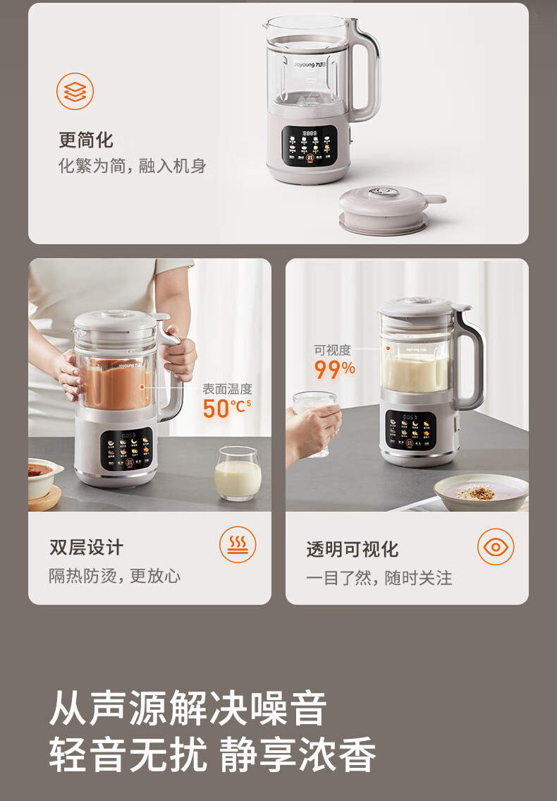 九阳轻音破壁豆浆机1.0L家用智能双重降噪免煮免过滤多功能料理机