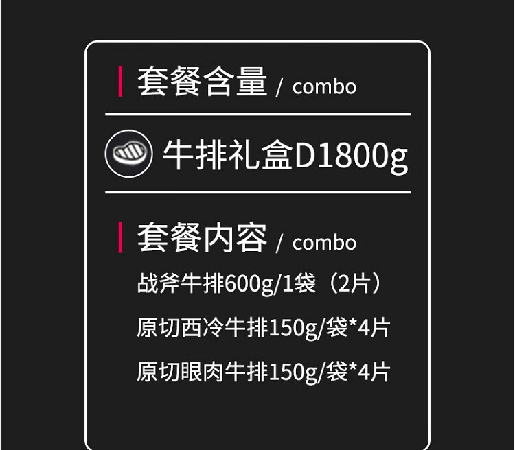 恒都 国产原切谷饲牛排礼盒D款1800g+恒都 国产原切谷饲牛肉礼盒E款4000g【HSZG10.0】