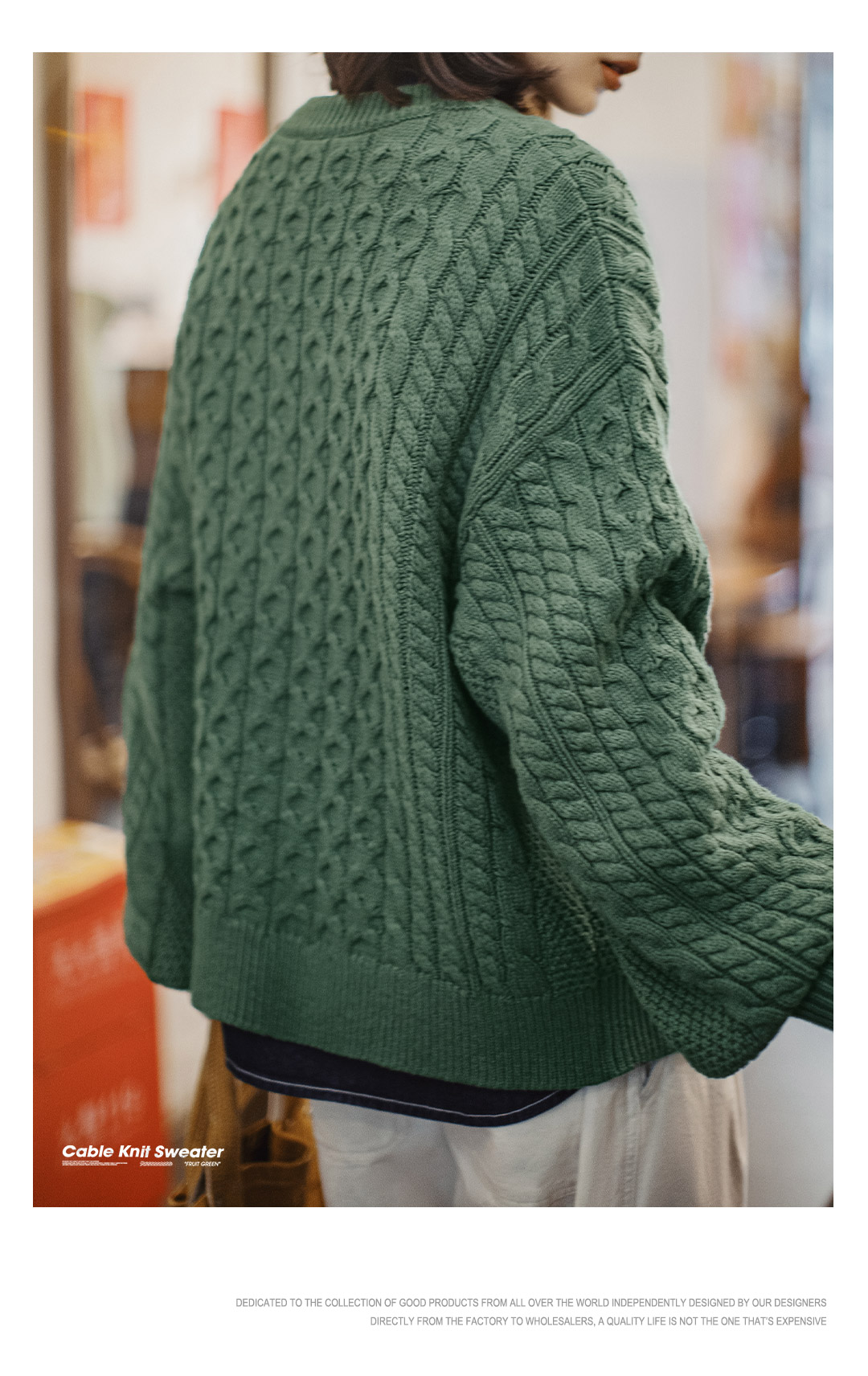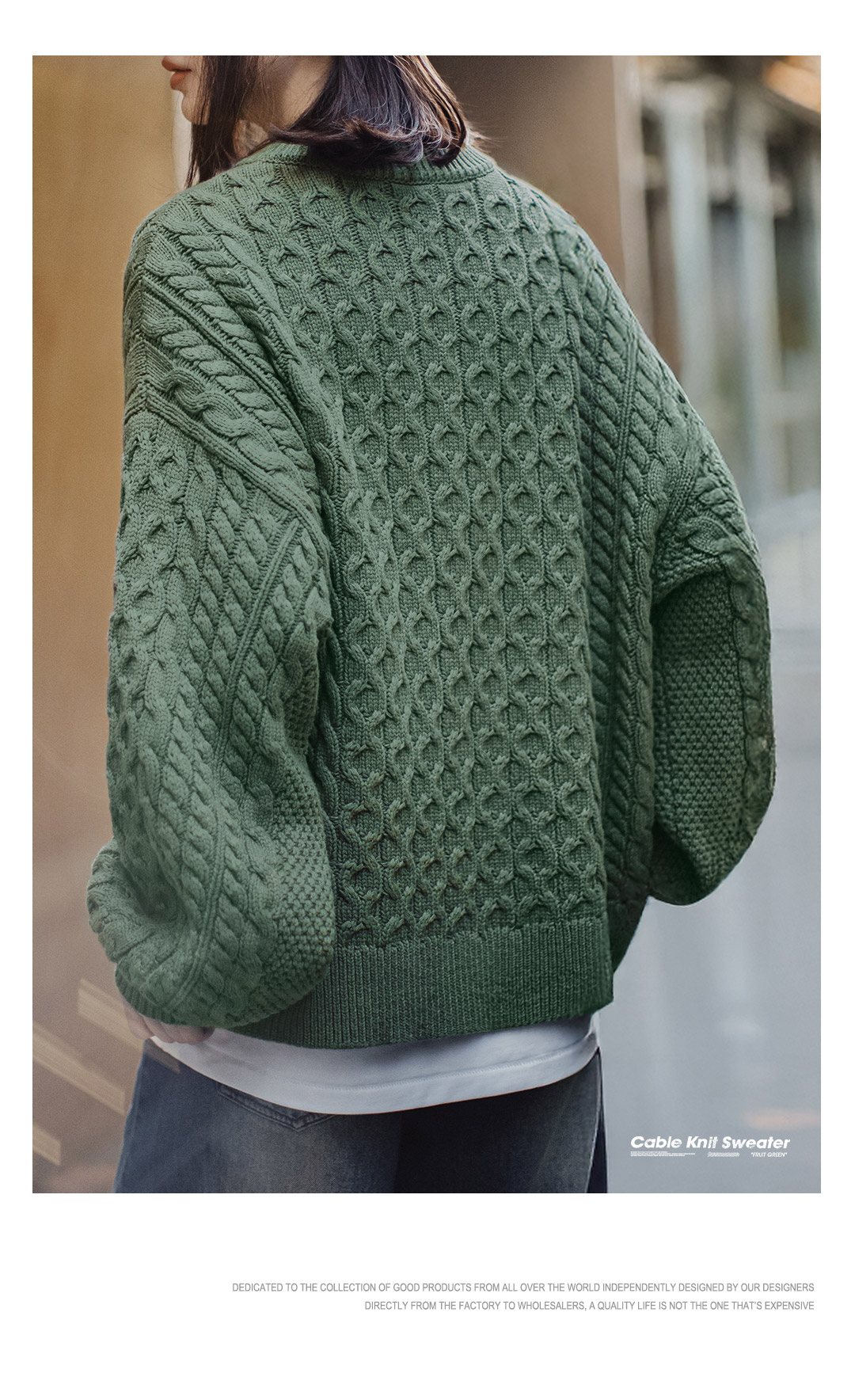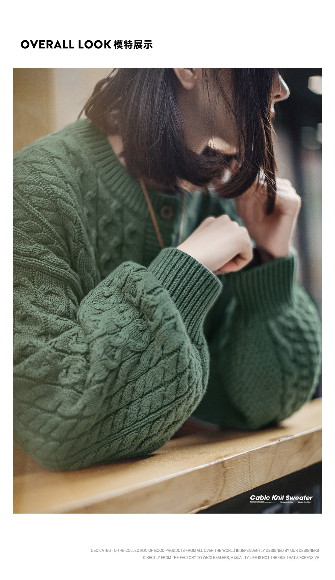 马登复古绿色亨利圆领宽松套头加厚针织衫绞花毛衣外套穿女士秋冬