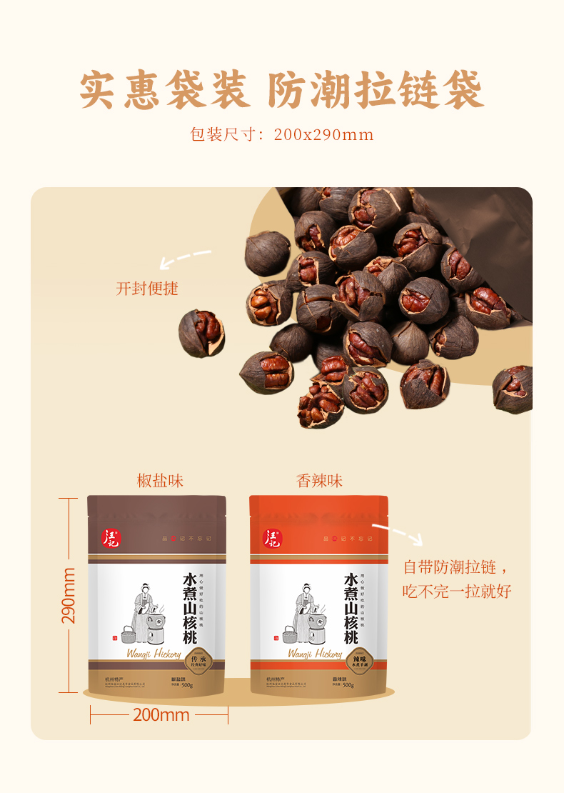 【水煮山核桃500g】汪记水煮手剥山核桃小核桃零食坚果临安山核桃水煮椒盐味袋装