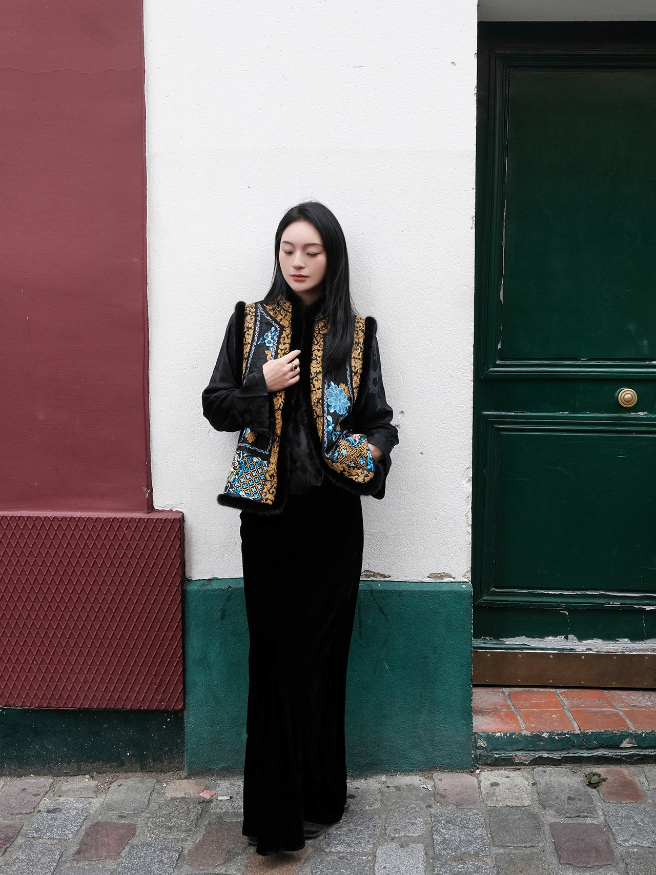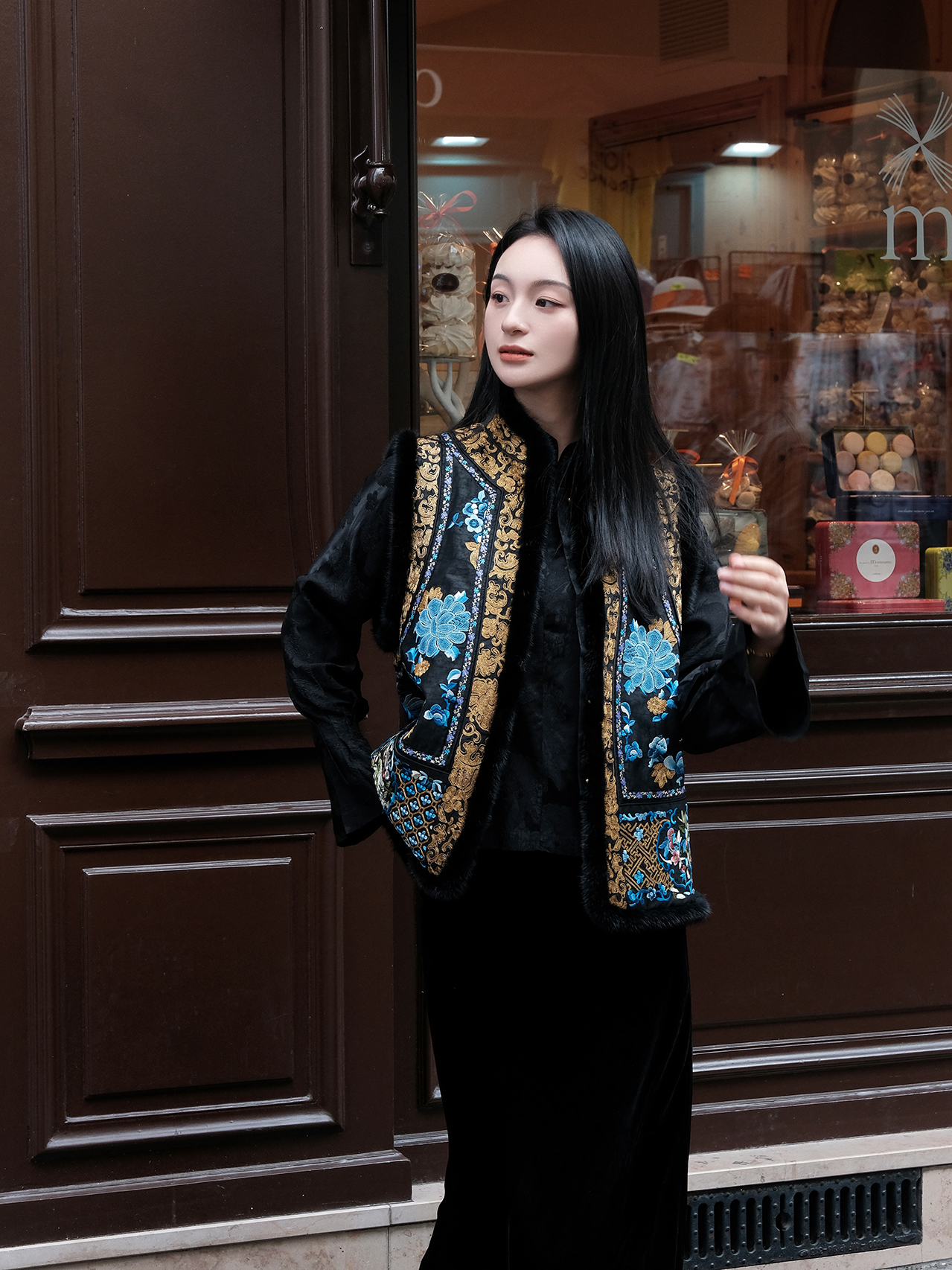 双11惠享 |盛唐牡丹| 福寿牡丹水貂毛坎肩-黑色[特价品]