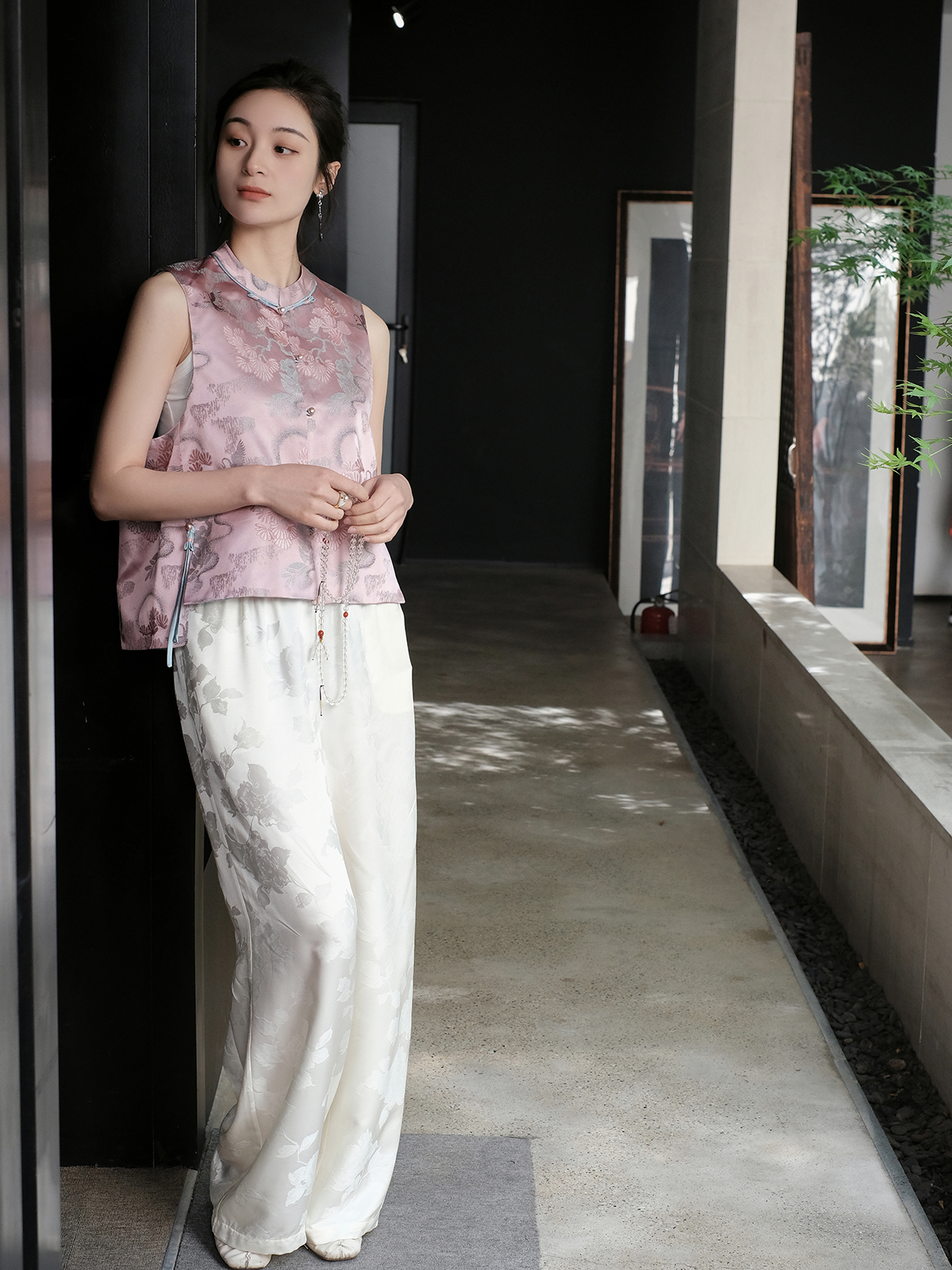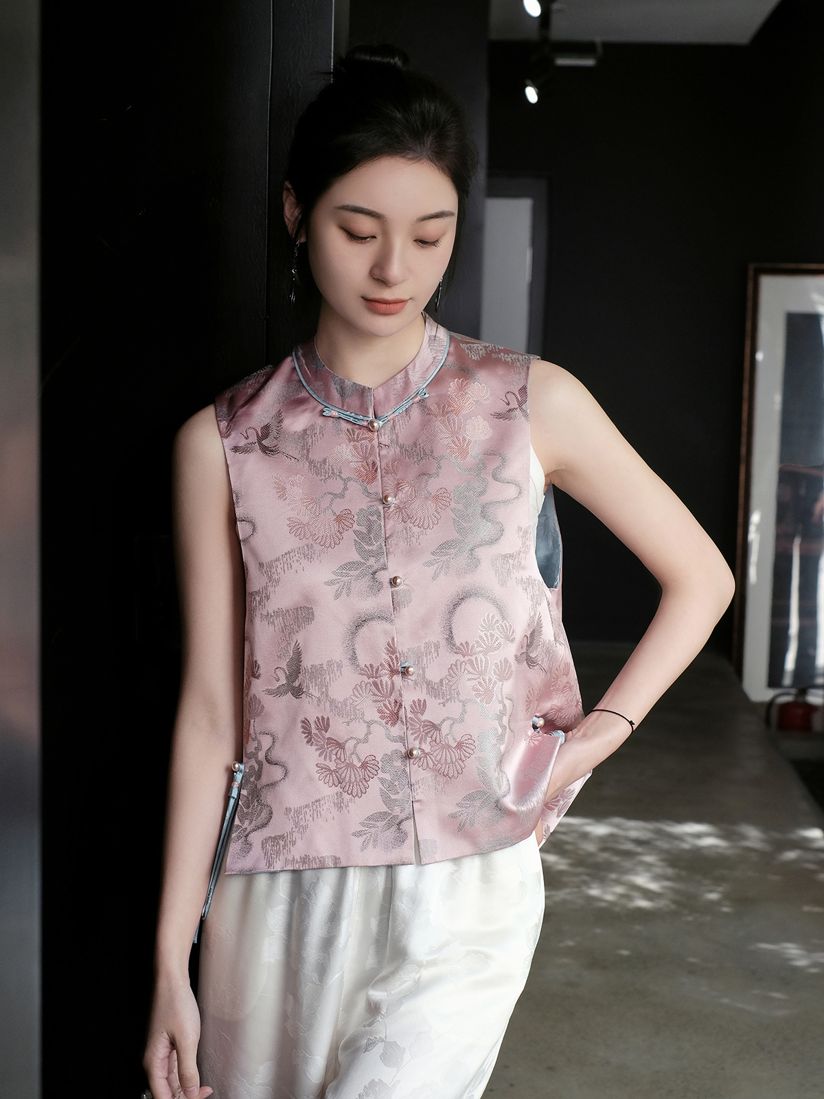 瑕疵| 盛唐牡丹 |宋锦闲云野鹤前短后长马甲[特价品](特殊商品不退不换)