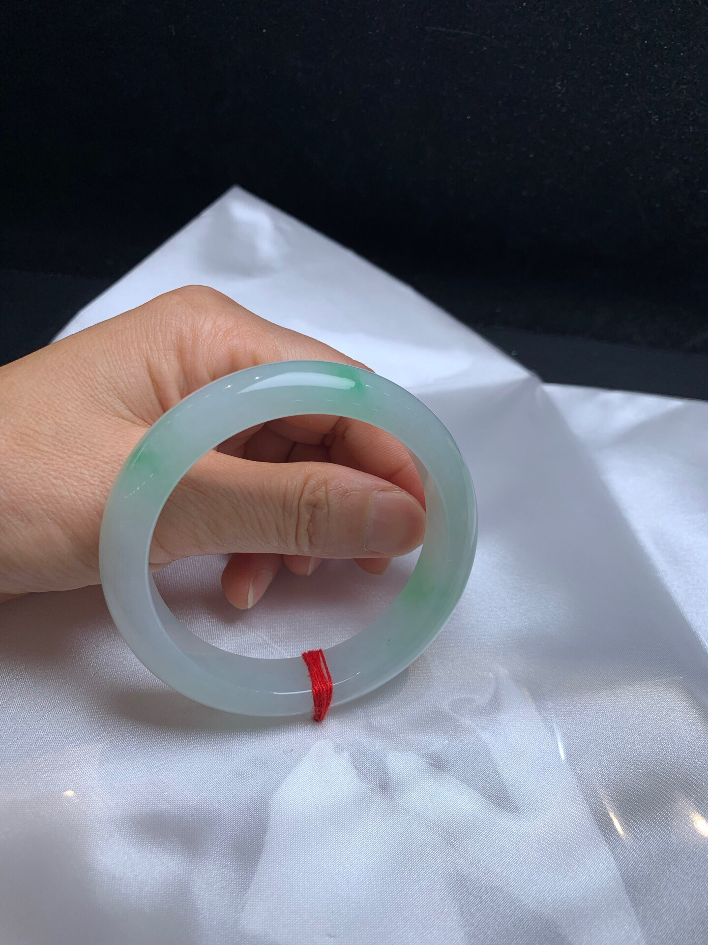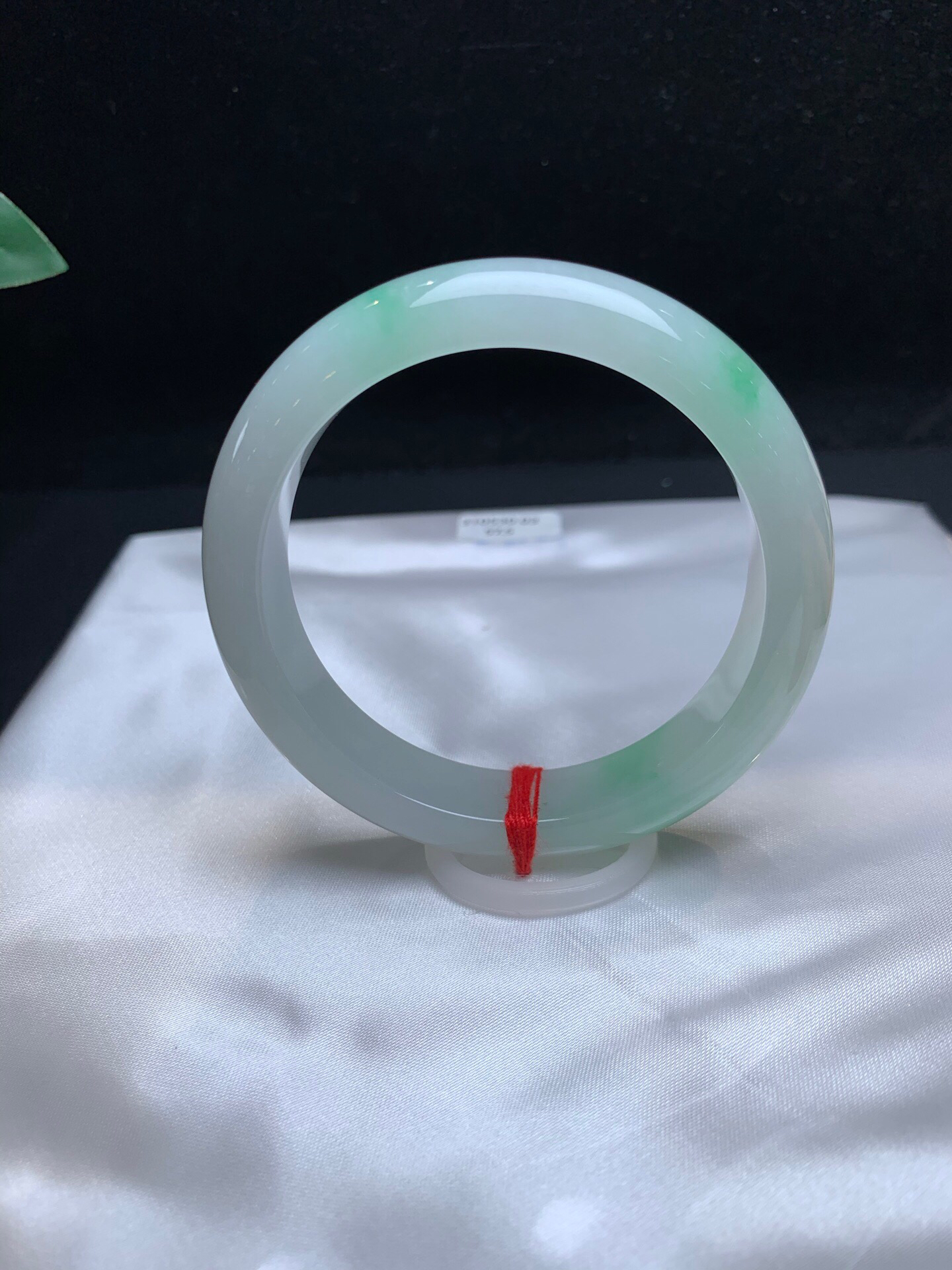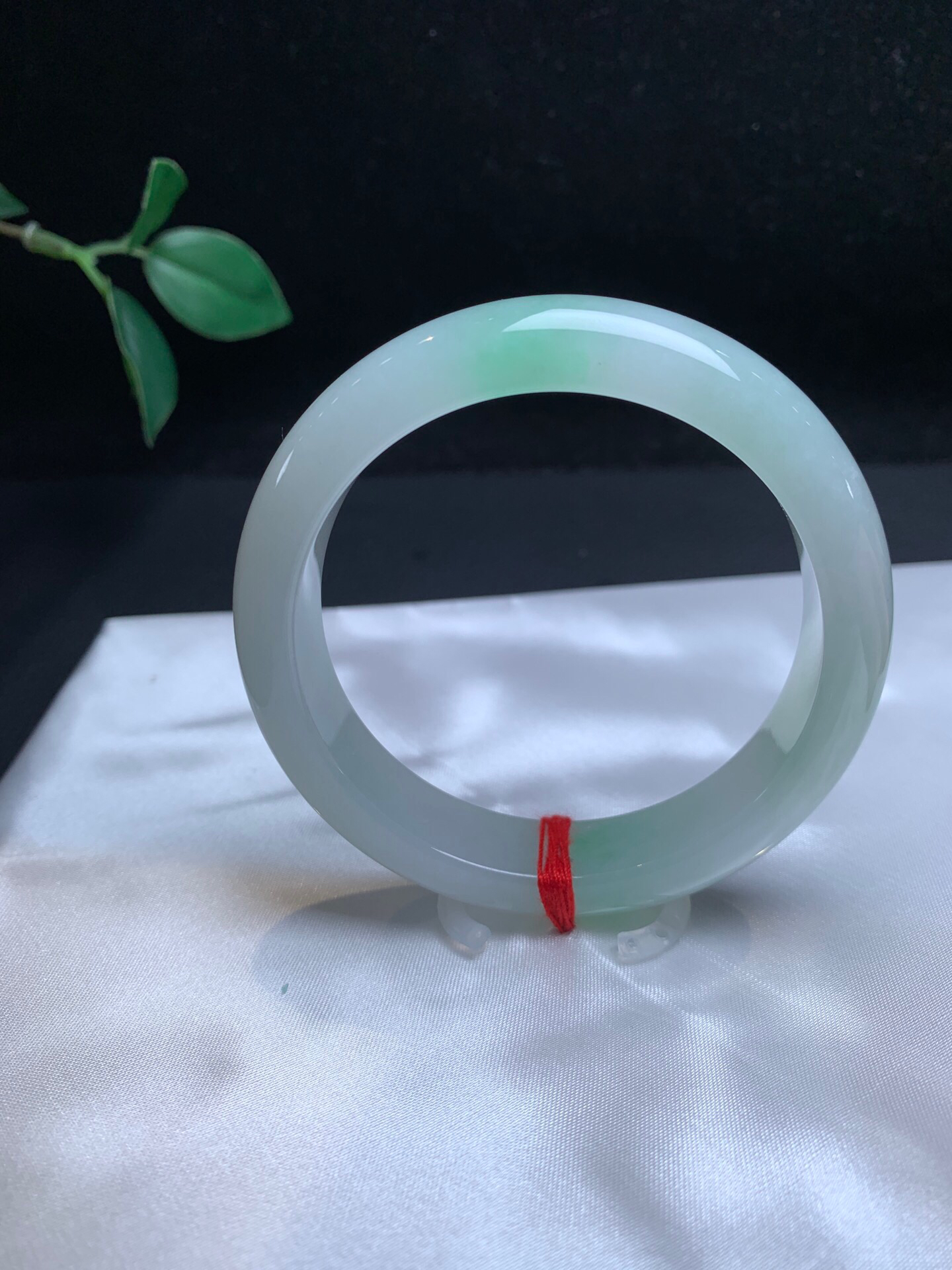 620193,57.5 飘绿正圈手镯,13-8.5mm 糯化底,飘清新绿。干净水润 ,完美的。超值价💰50000 #优石客珠宝#香玉荟萃