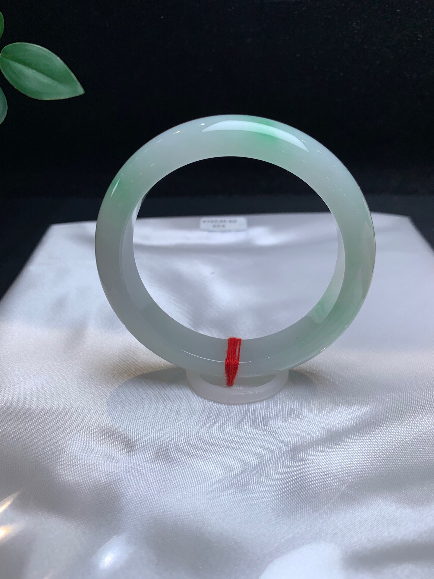 620193,57.5 飘绿正圈手镯,糯化底,飘清新绿。干净水润