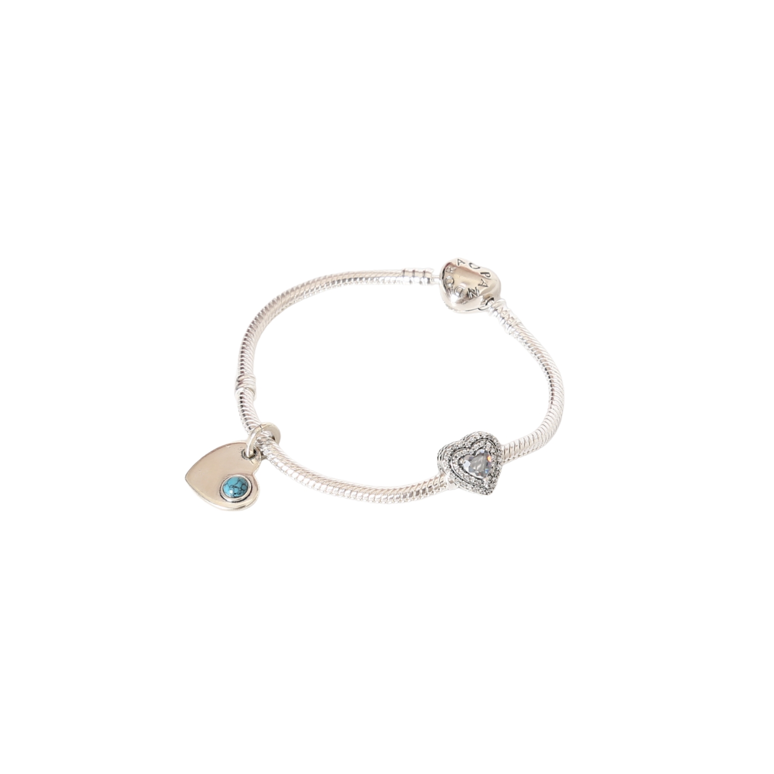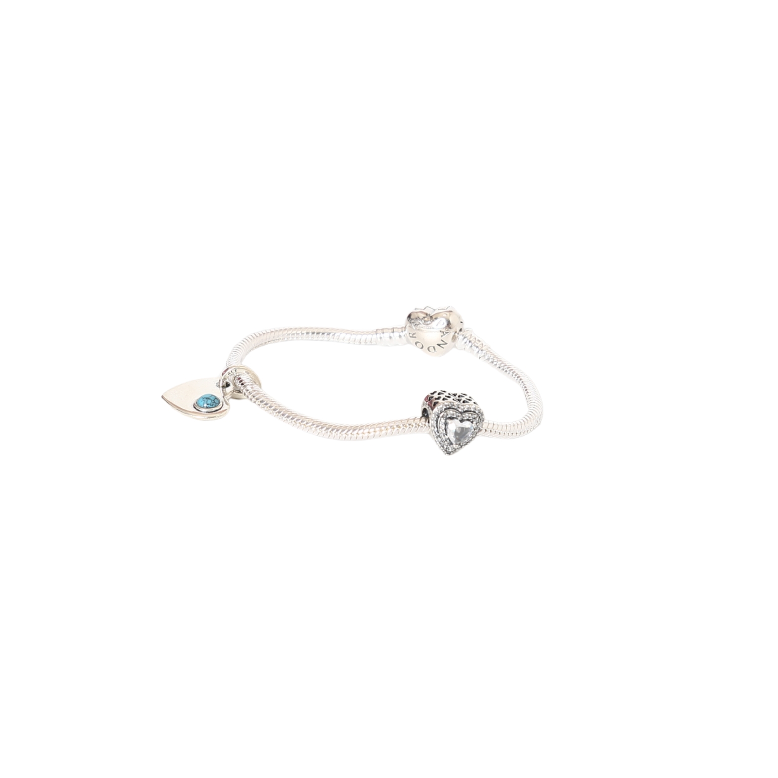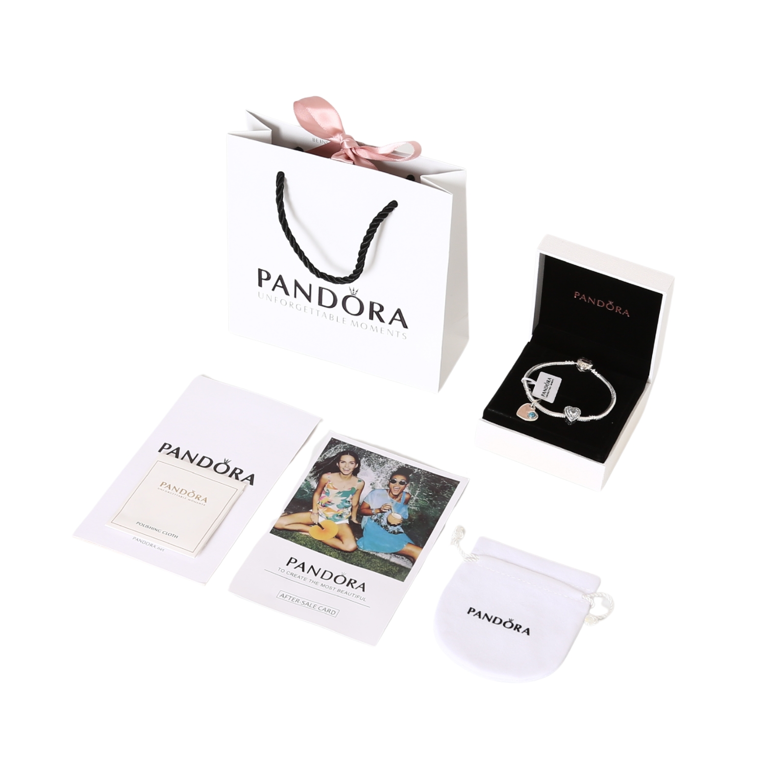 两颗心形串饰是点睛之笔:满镶锆石款在光线下会漾开细碎闪,像把星光揉进掌心;另一颗缀着清透蓝石,温柔又显白,随手一搭就有松弛的精致感。潘多拉标志性礼盒自带高级质感,不管是自留当日常小惊喜,还是送闺蜜、恋人都足够有心意 —— 毕竟能把 “温柔” 戴在手上的饰品,永远都戳中人心。