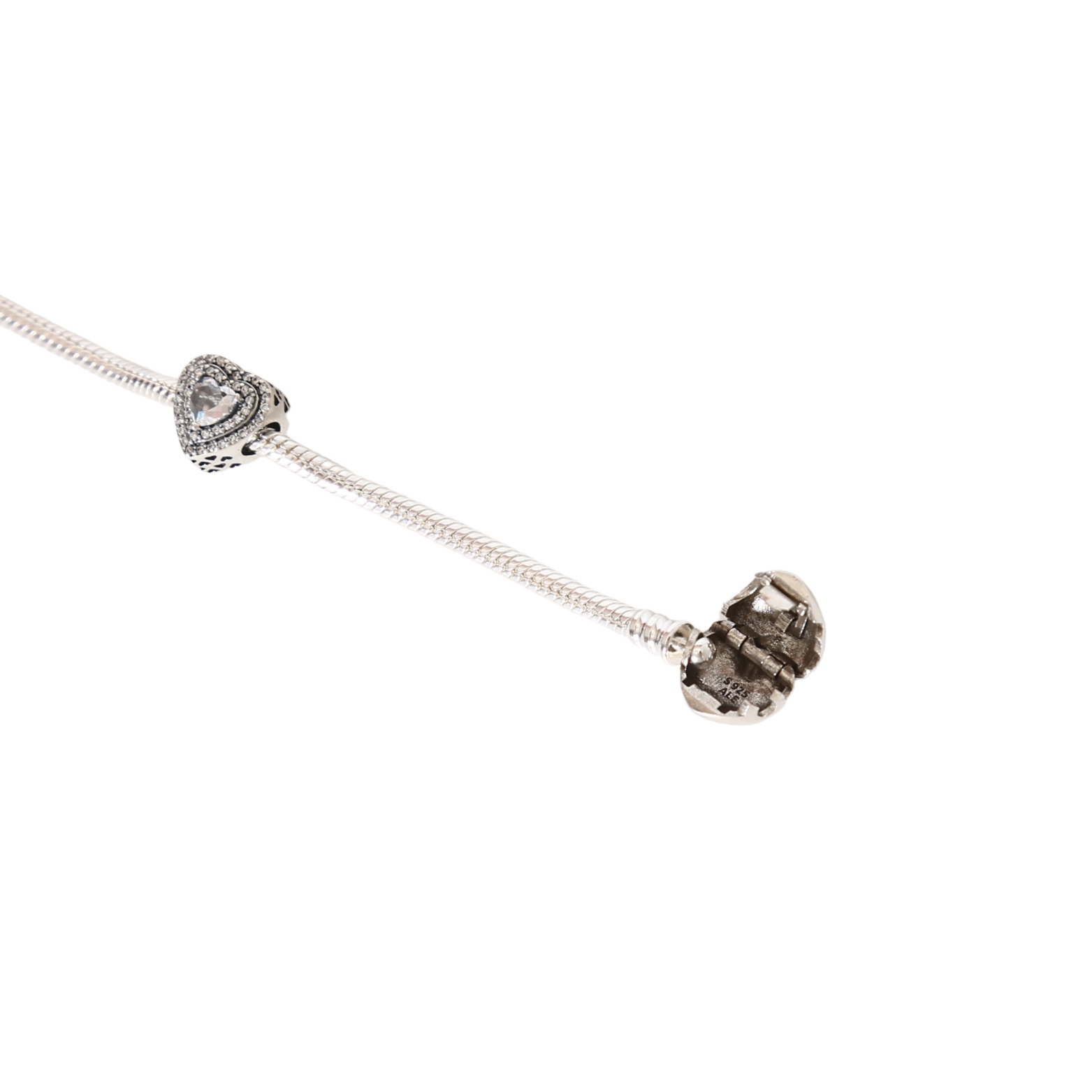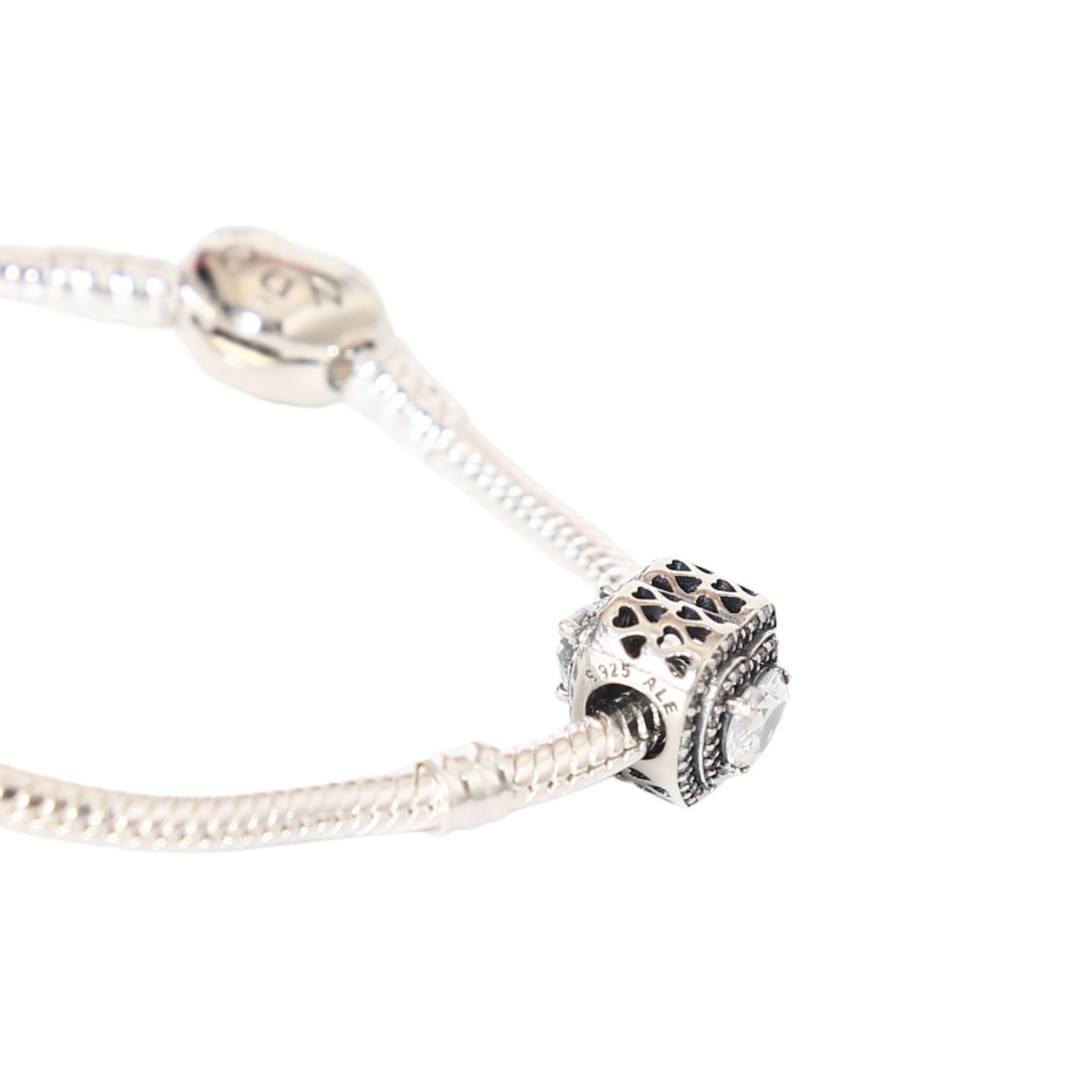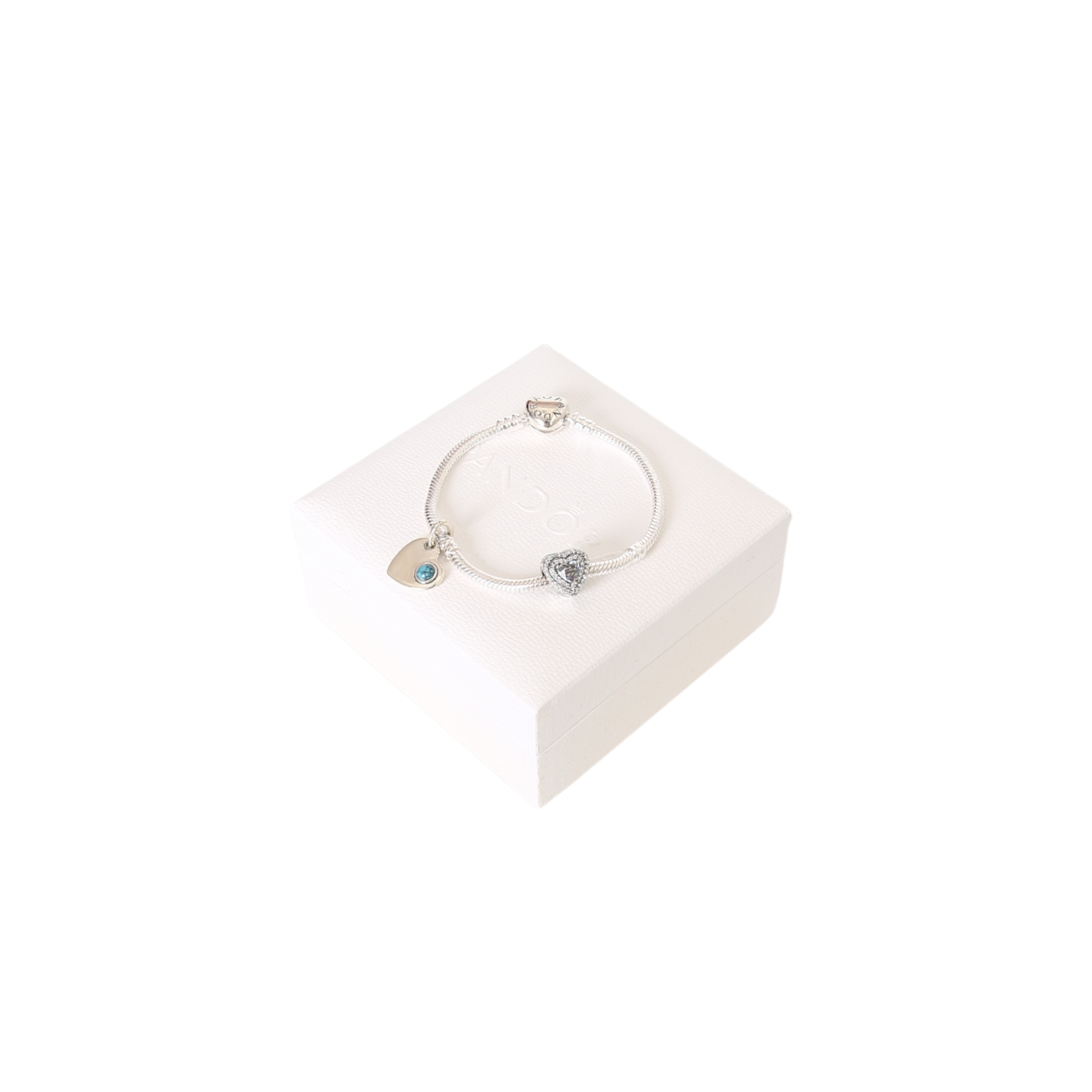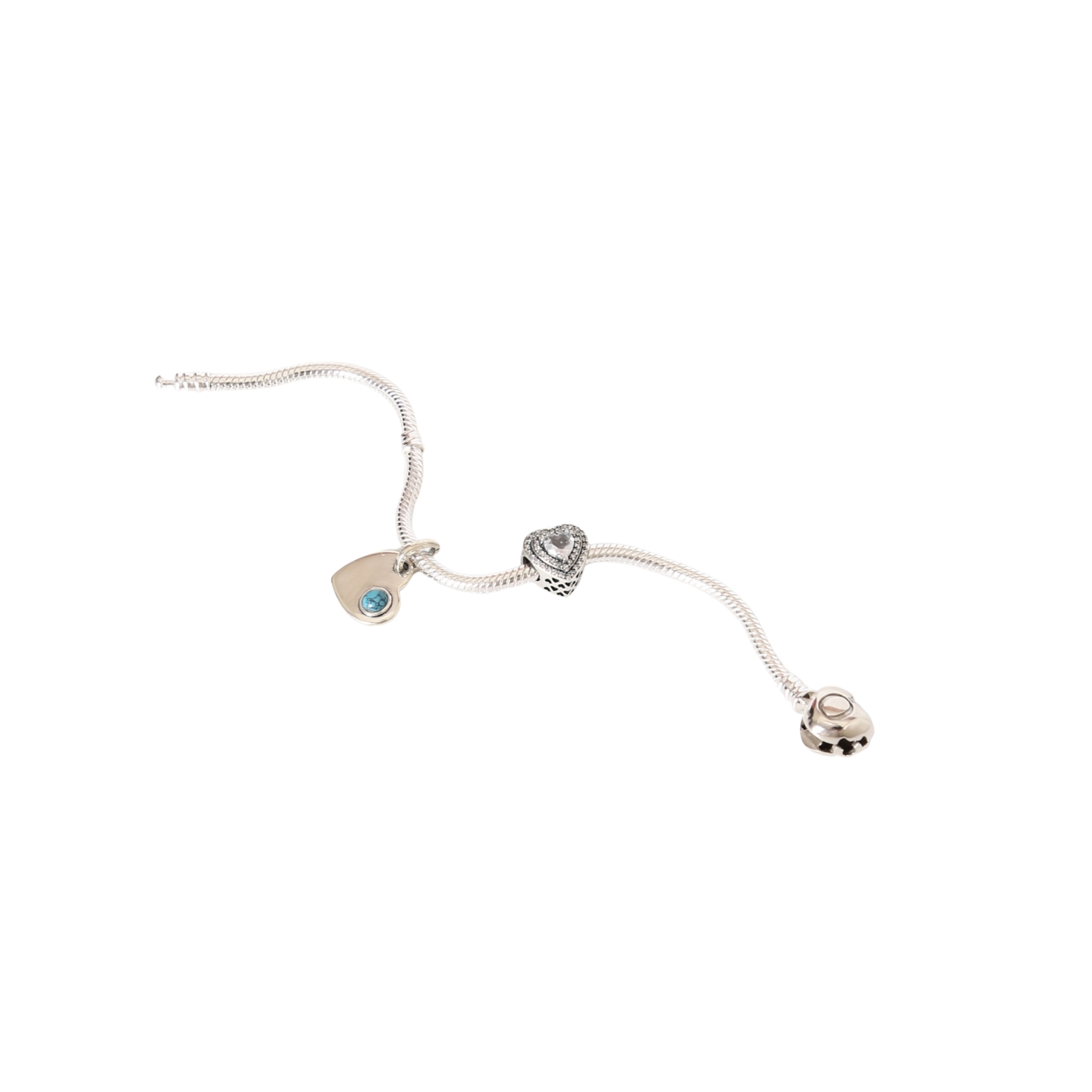 两颗心形串饰是点睛之笔:满镶锆石款在光线下会漾开细碎闪,像把星光揉进掌心;另一颗缀着清透蓝石,温柔又显白,随手一搭就有松弛的精致感。潘多拉标志性礼盒自带高级质感,不管是自留当日常小惊喜,还是送闺蜜、恋人都足够有心意 —— 毕竟能把 “温柔” 戴在手上的饰品,永远都戳中人心。
