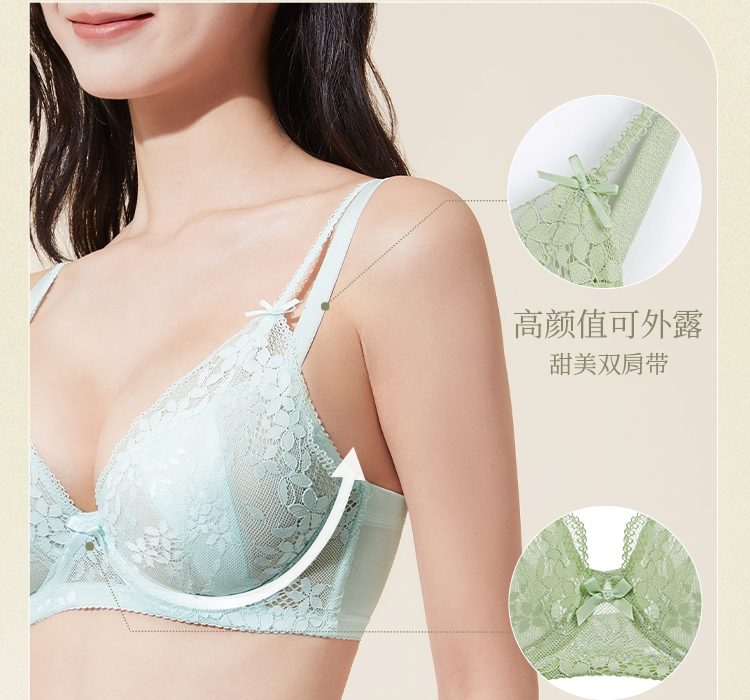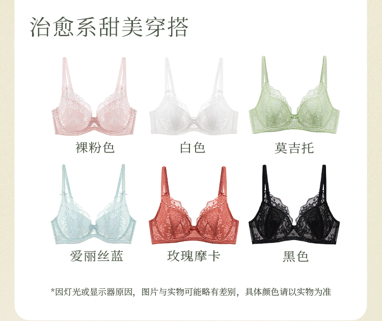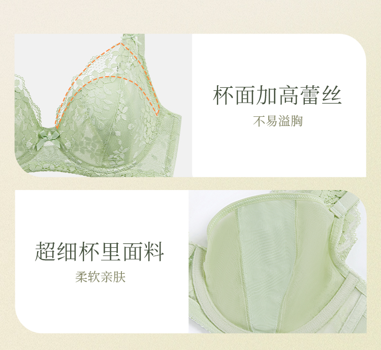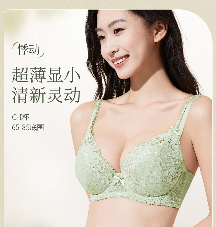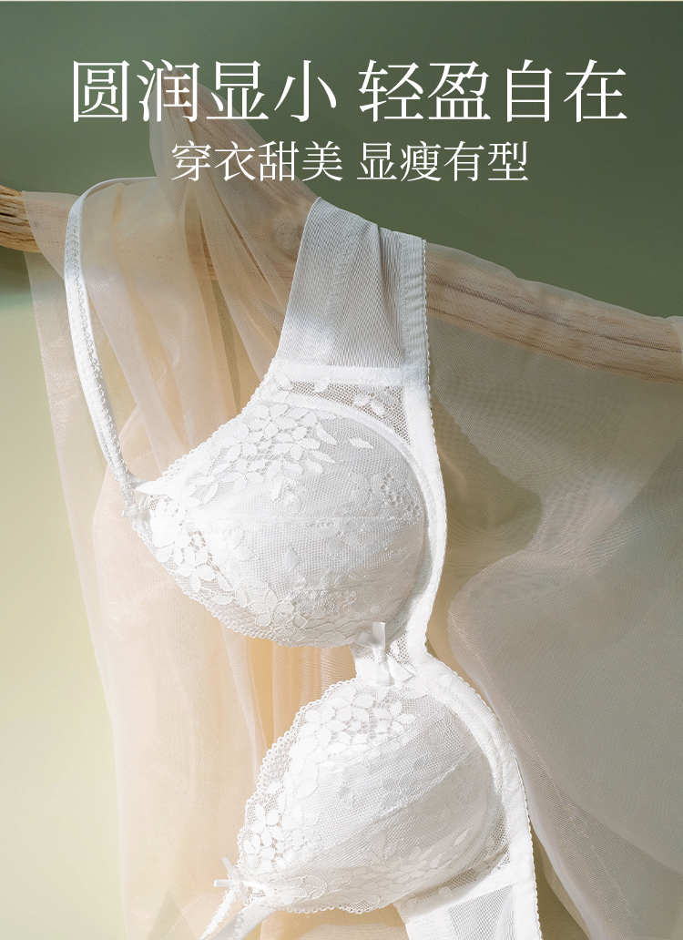 [悸动]大胸显小超薄蕾丝文胸大胸显瘦显小聚拢承托内衣双肩带内衣女