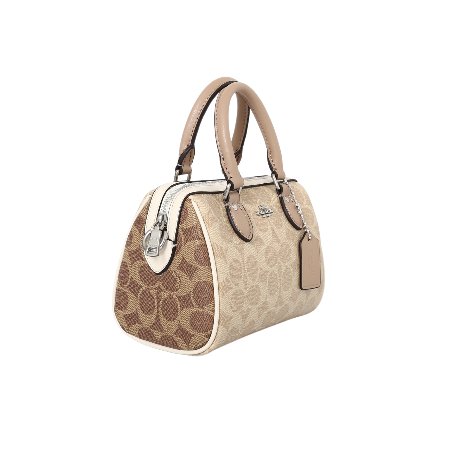 COACH蔻驰 Rowan 18 品牌徽标可拆卸肩带 PVC 波士顿包单肩斜挎手提包-小号女款-奶茶色!人生第一个轻奢包,工作后觉得该给自己买一个实用又好看的包了,Coach波士顿包到手后真的非常漂亮!我特别喜欢奶茶色,手提和侧面印花的颜色一致,显得特别高级!包包鼓鼓的很有型,容量足够装下日常所需物品,无论是手提还是斜挎都很合适,这个色系在秋冬背起来更显温柔气质!