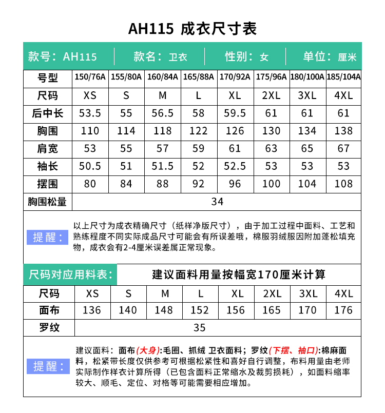 裁缝学苑AH115秋冬加绒高领套头卫衣纸样连帽女装打版裁剪图纸