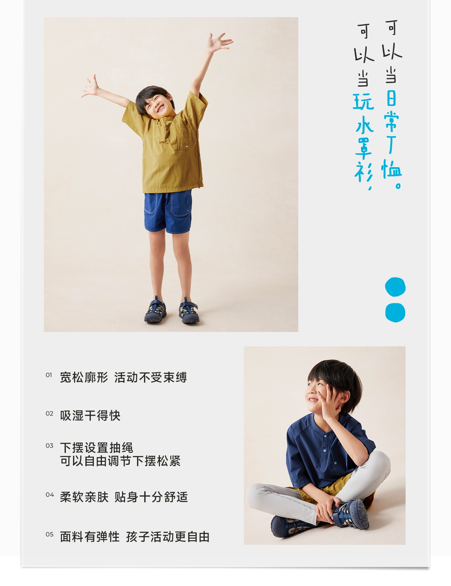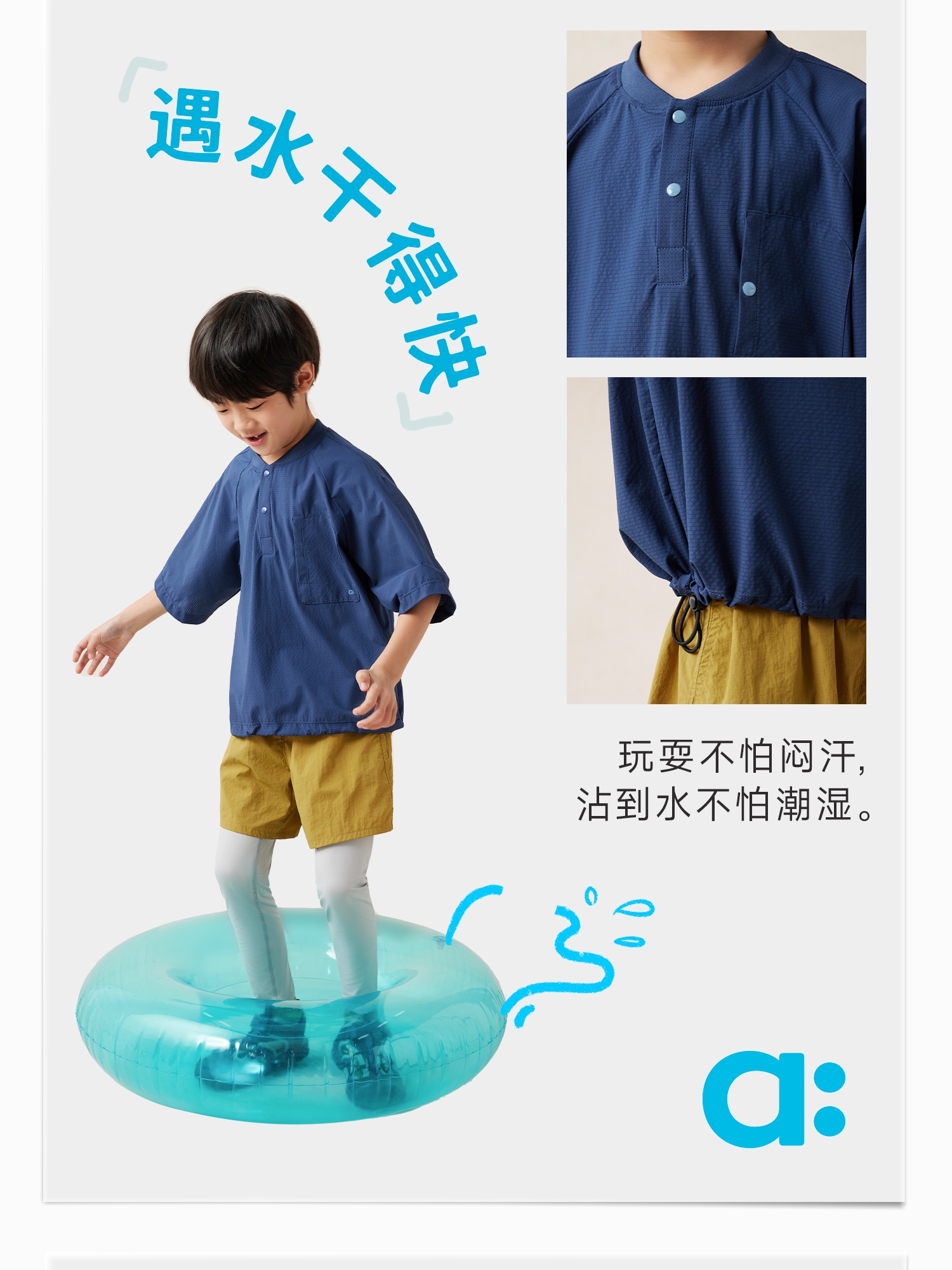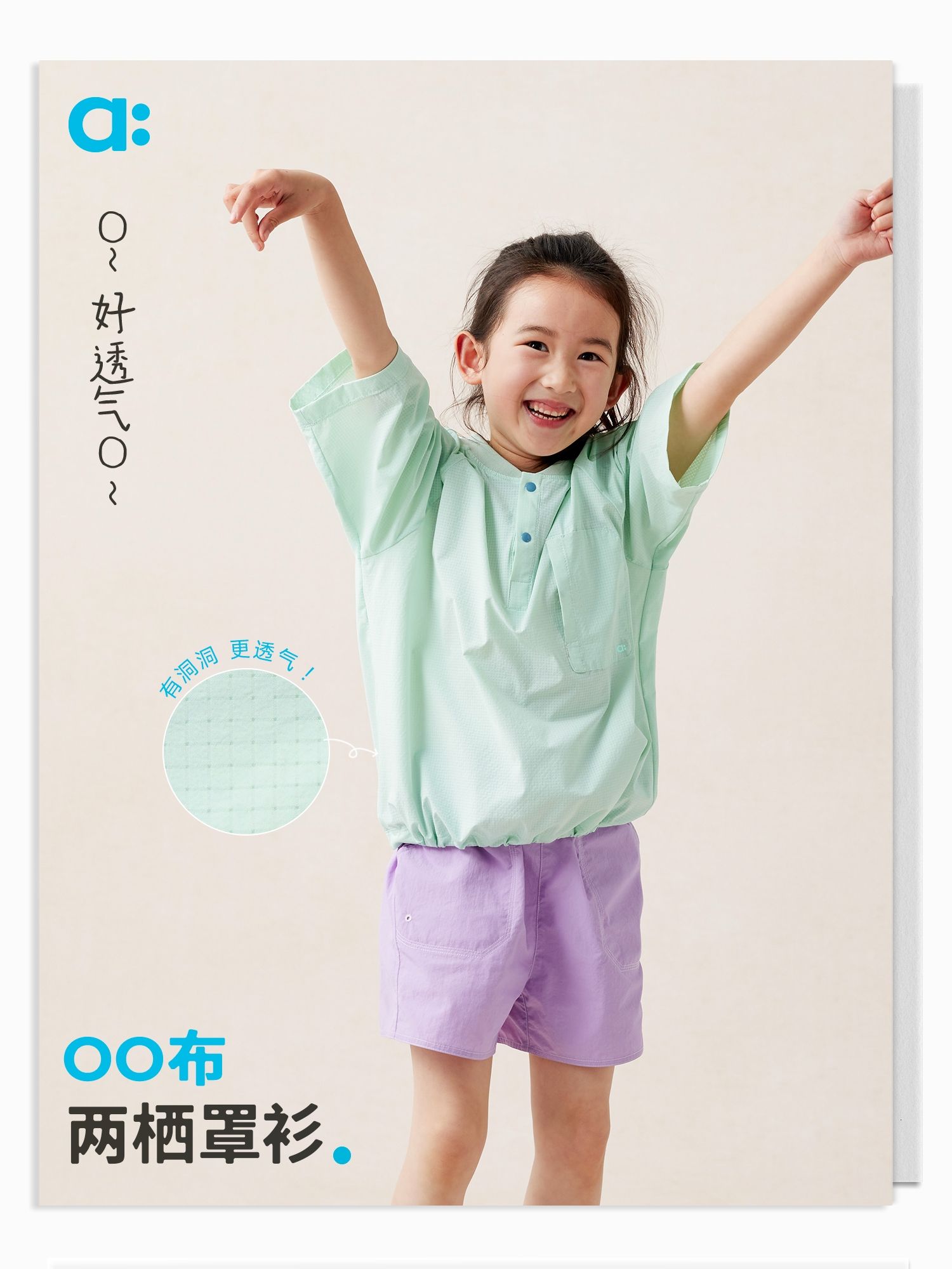 【好友特惠-玩水系列】幼岚「OO布」两栖罩衫有洞而不透24夏款儿童短袖T恤ZY