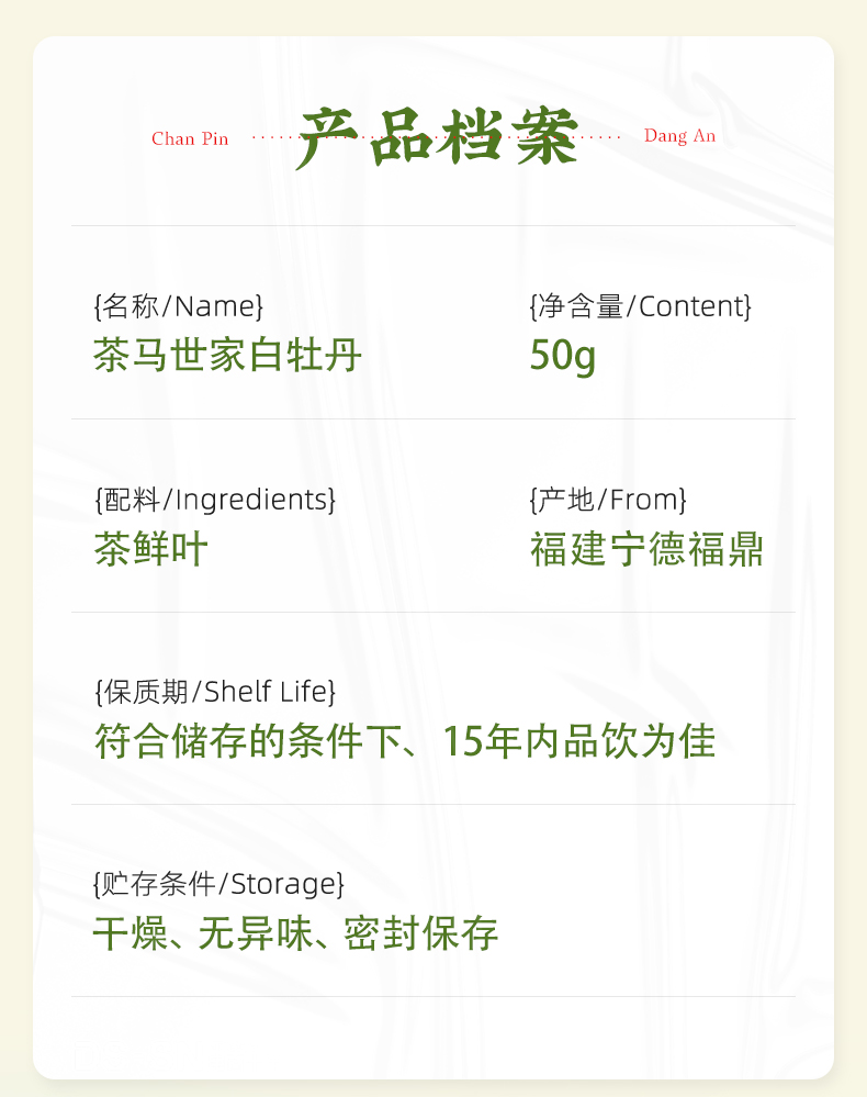 【福鼎核心】茶马世家正宗福鼎老白茶花香白牡丹散茶50g