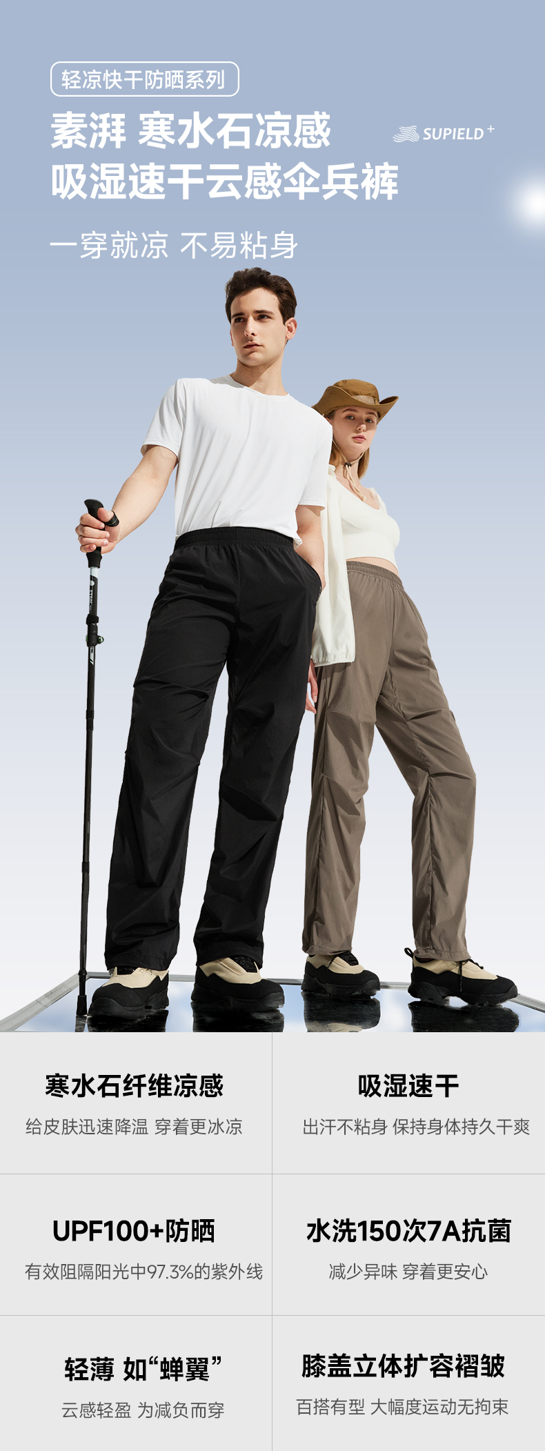 素湃吸湿速干云感伞兵裤凉感长裤男女薄款冲锋裤防泼水C3442