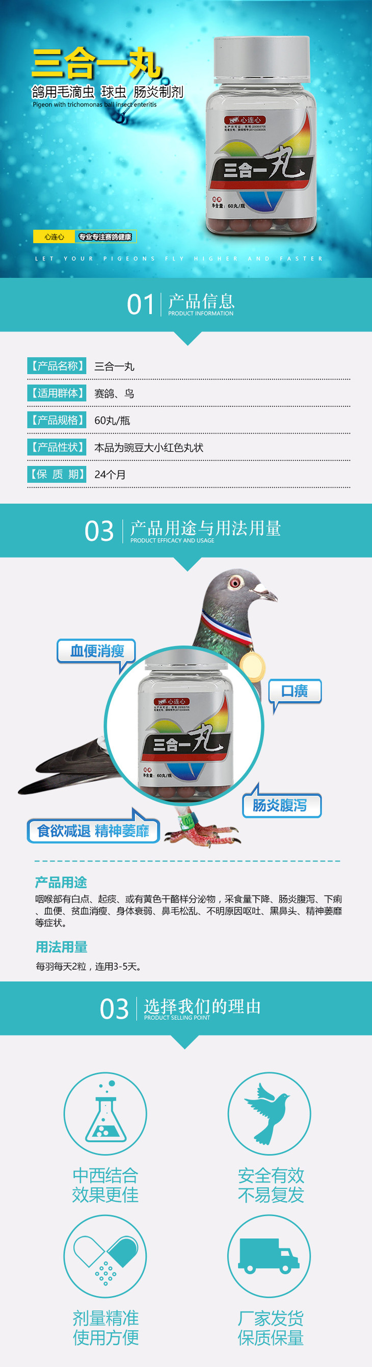 【三合一丸】 毛滴虫 球虫 肠炎三效合一 中西结合(心连心)