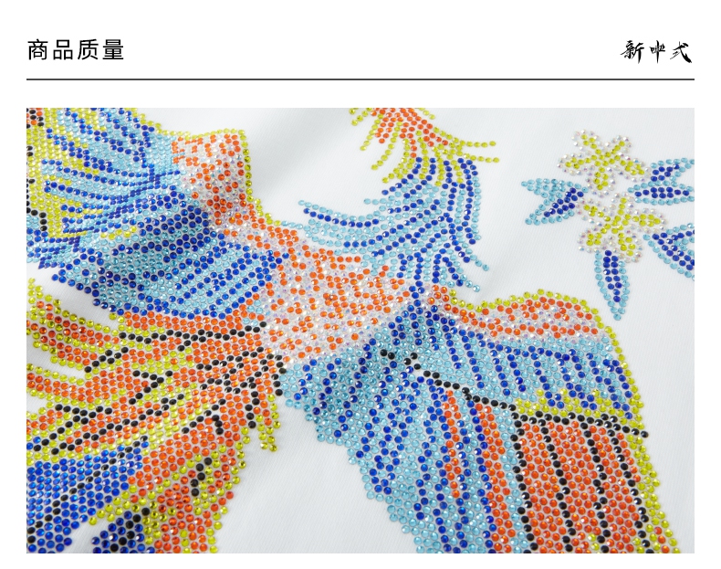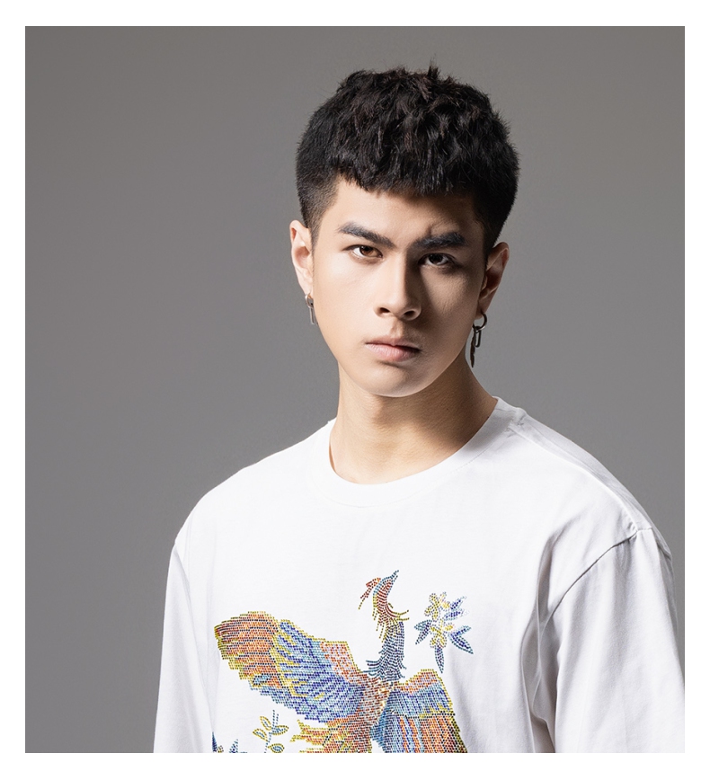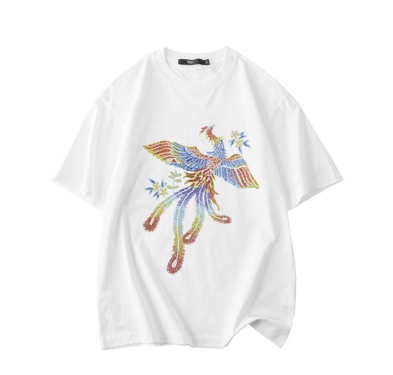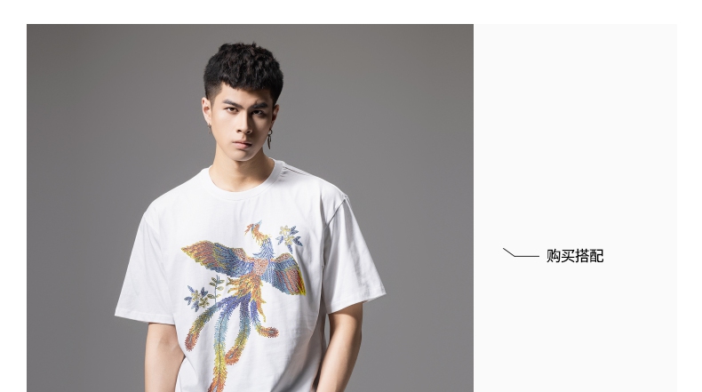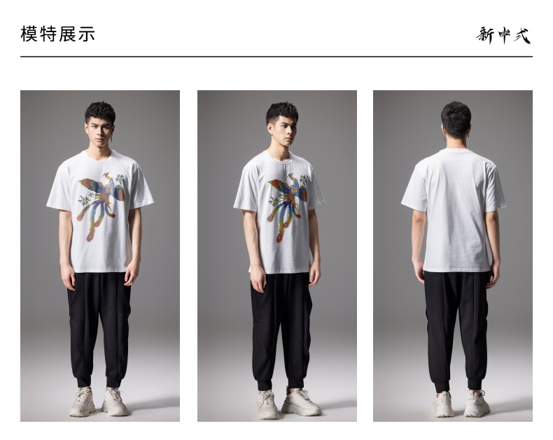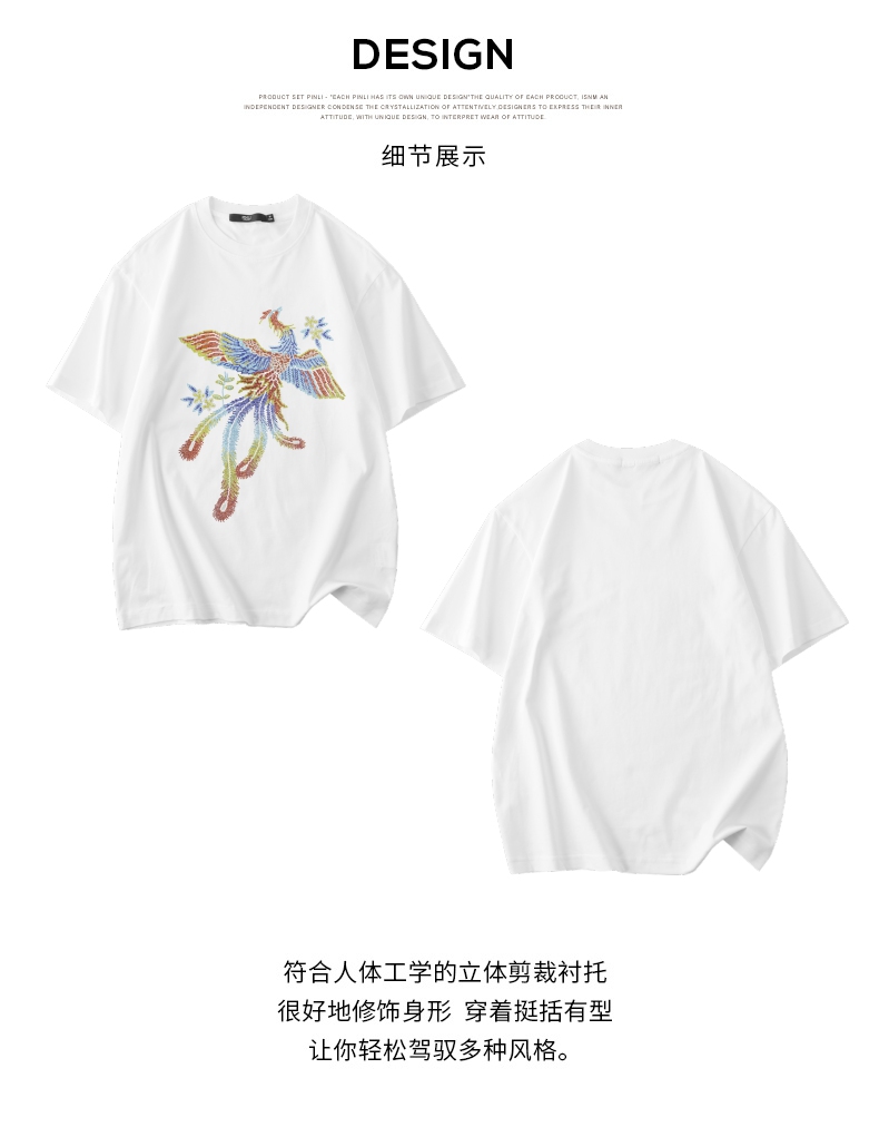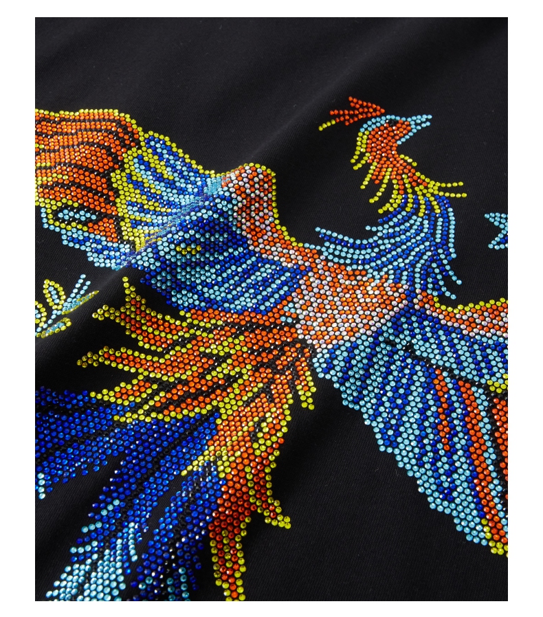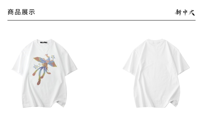 PINLI品立新中式2024夏季新款烫钻凤凰短袖T恤男士国潮休闲体恤BG242111038