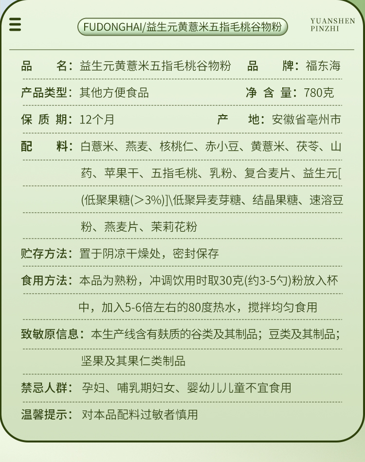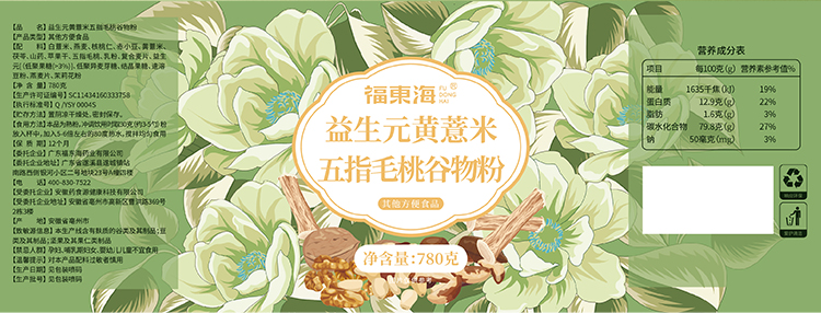 福东海 益生元黄薏米气五指毛桃谷物粉780g 燕麦粉早餐代餐粉祛薏湿饮