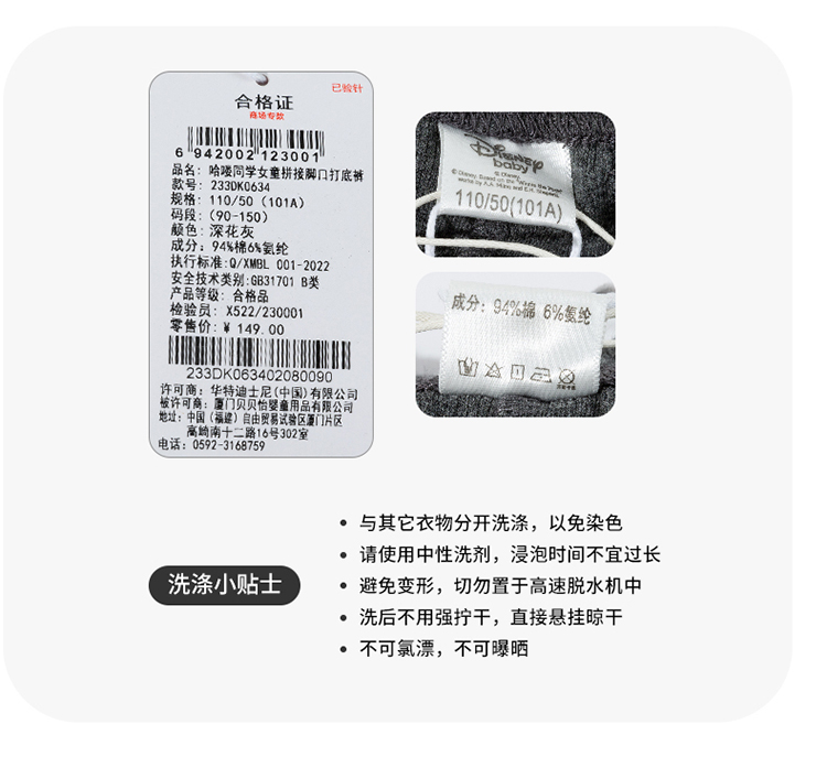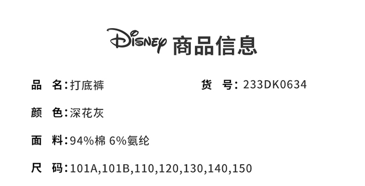 迪士尼女童公主系列哈喽同学女童拼接脚口打底裤233DK0634