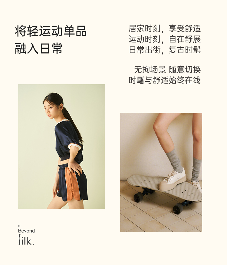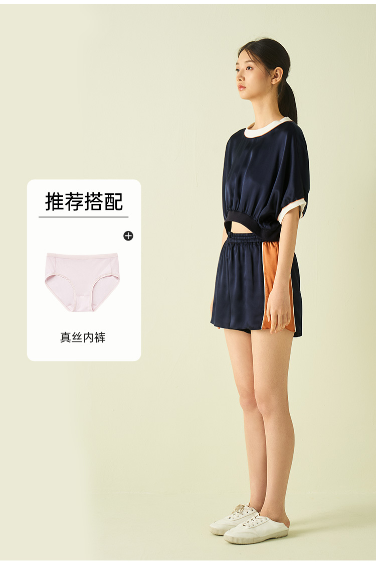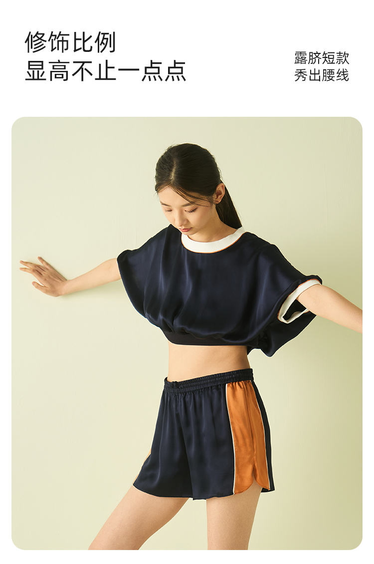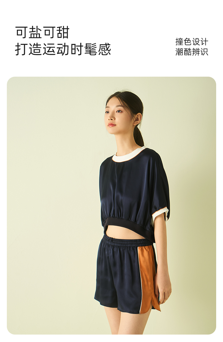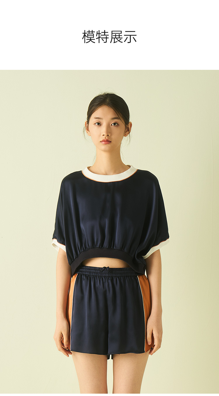 桑罗藏青色超短撞色运动真丝睡衣套装可盐可甜两件套25年夏季新品