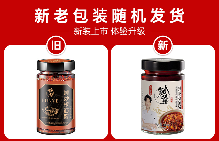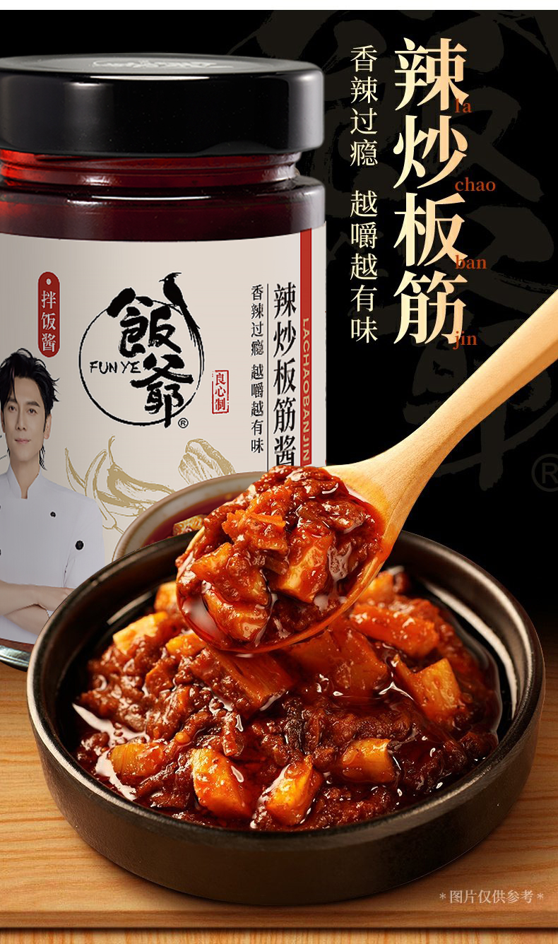 饭爷辣炒板筋辣酱180g*2瓶/3瓶装牛板筋辣椒酱拌面神器下饭拌饭酱
