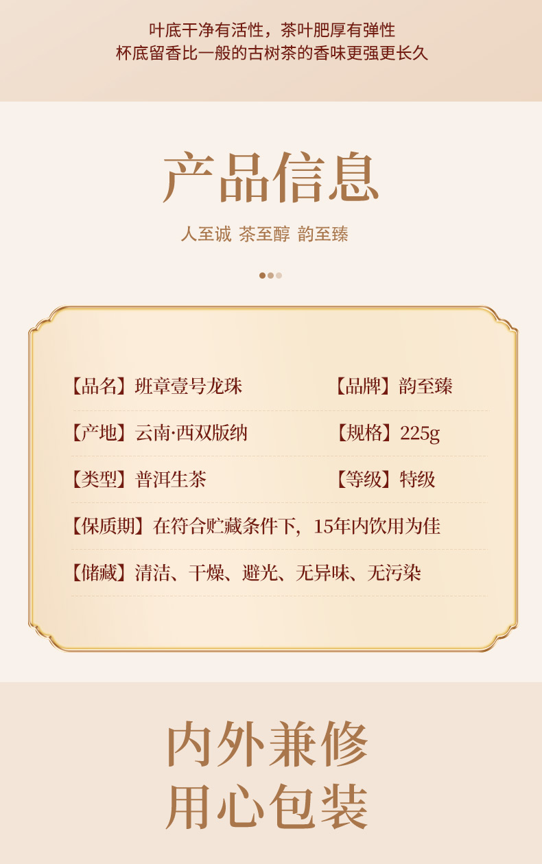【普洱茶 壹号龙珠】 韵至臻 珍藏 普洱茶(生普) 壹号龙珠 225克/罐
