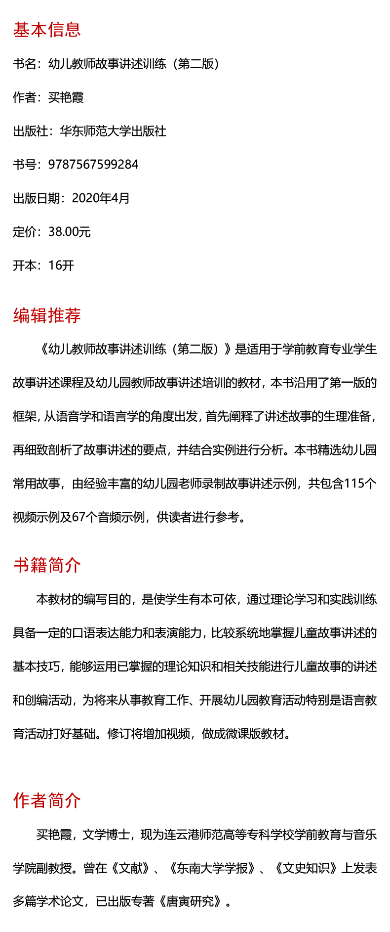 幼儿教师故事讲述训练 第二版 微课版 买艳霞 高职高专学前教育专业系列教材