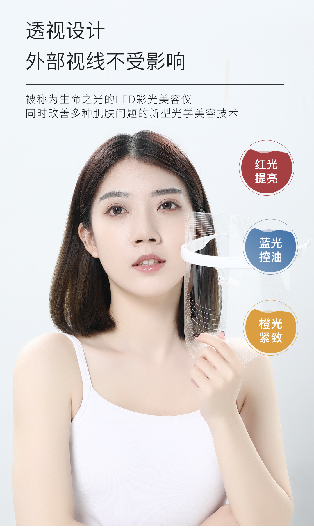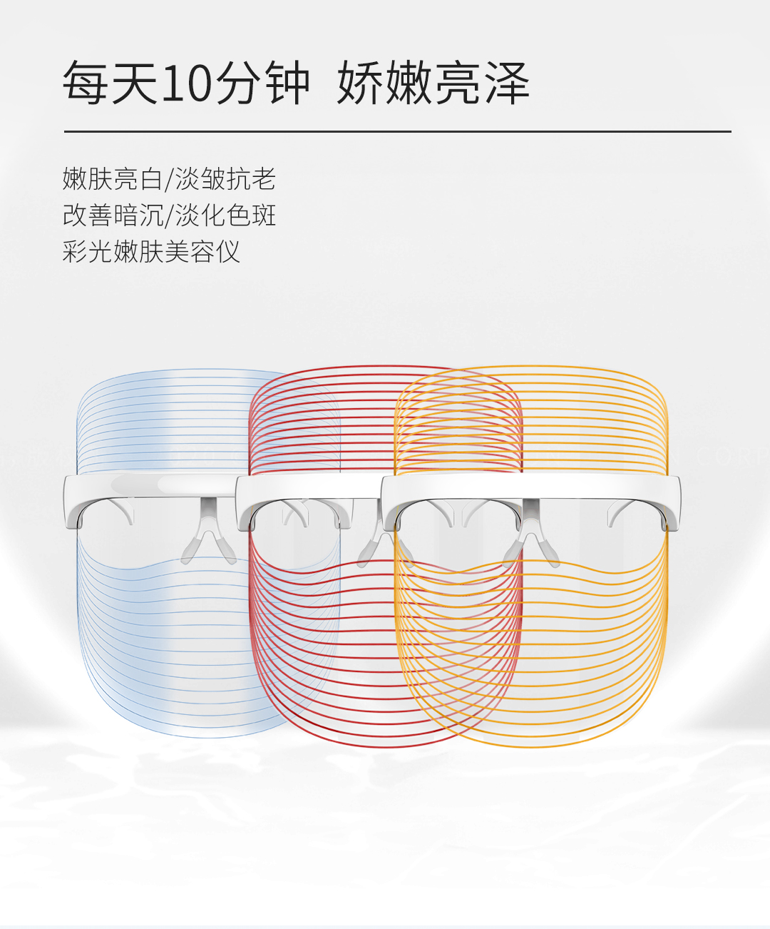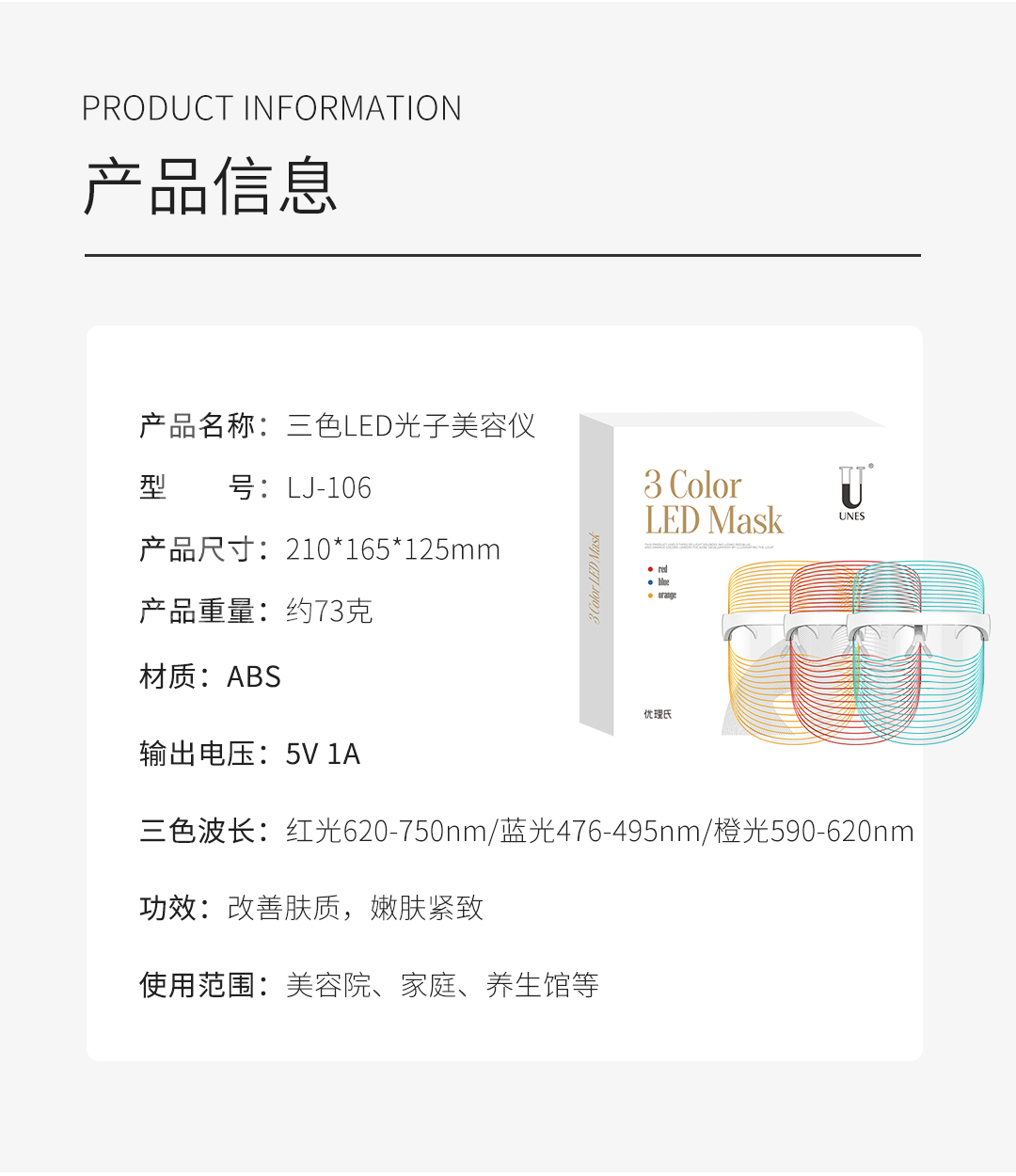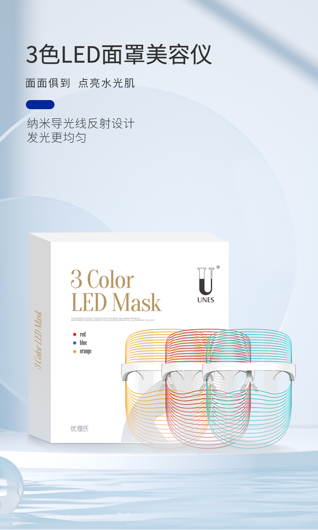 优理氏3色LED面罩美容仪 光谱面罩 紧致肌肤 改善细纹 增强皮肤弹性紧致淡纹 面部美容嫩肤导入仪