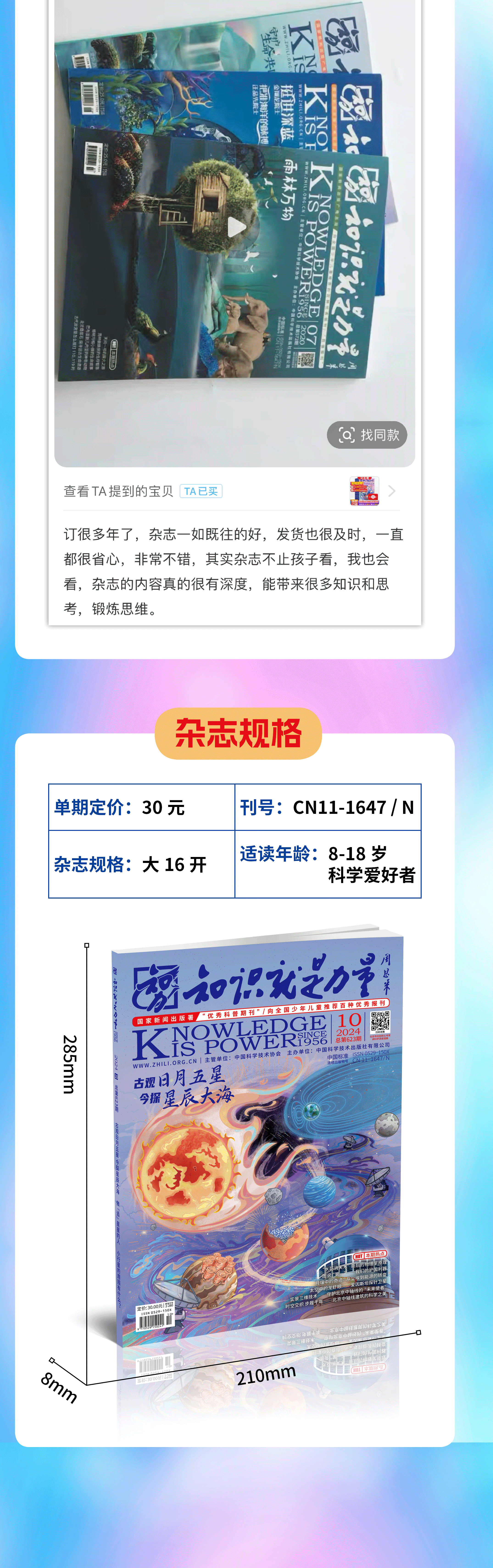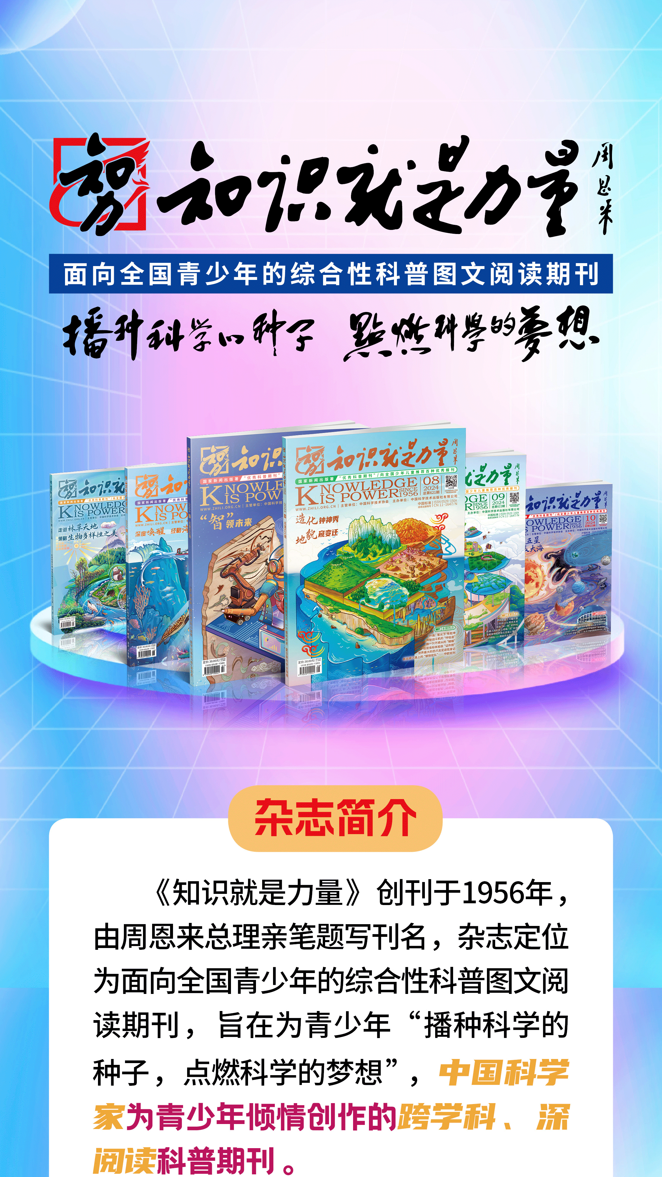 《知识就是力量》跨年订阅2025年12月-26年11月刊(全12期,加赠3本)| 周总理亲笔题词,聚齐600余位院士、学者,钱学森、华罗庚都为它撰稿,无数科技牛人大咖的童年枕边书,中国孩子的科普盛宴