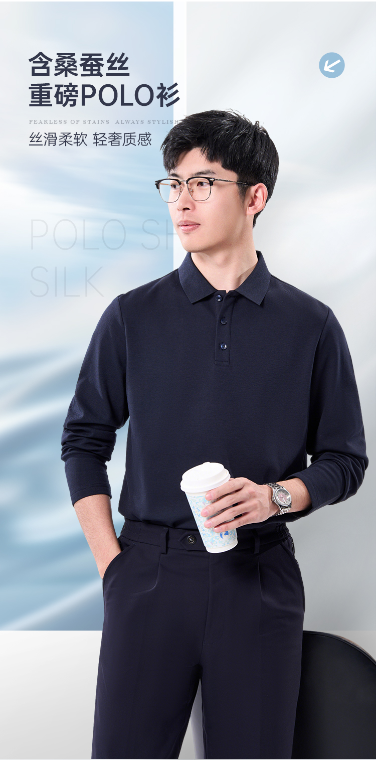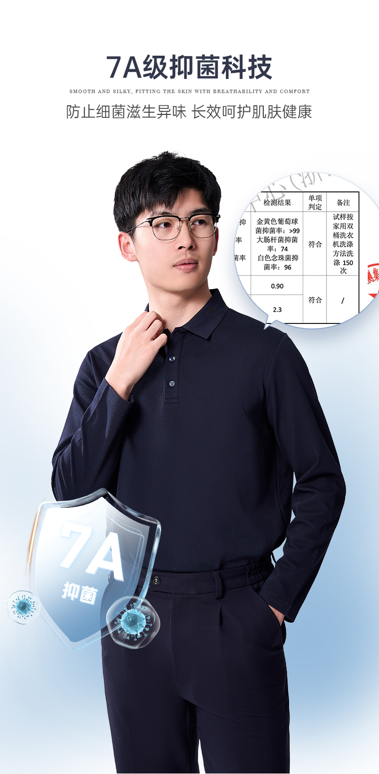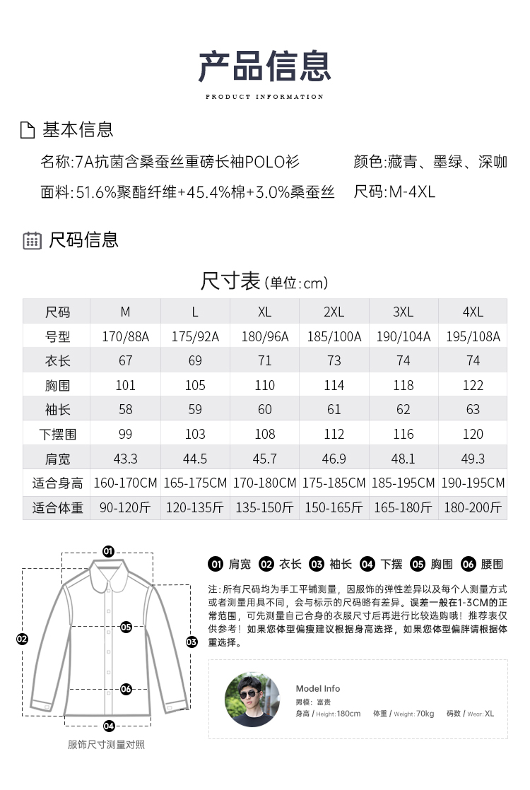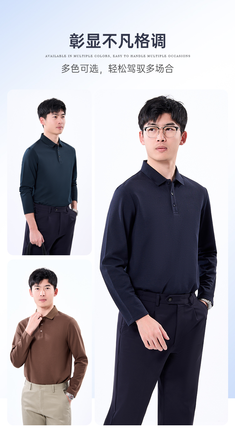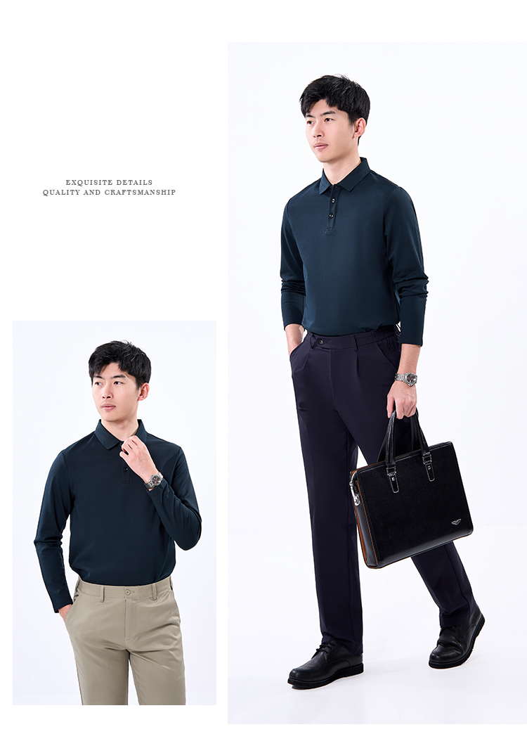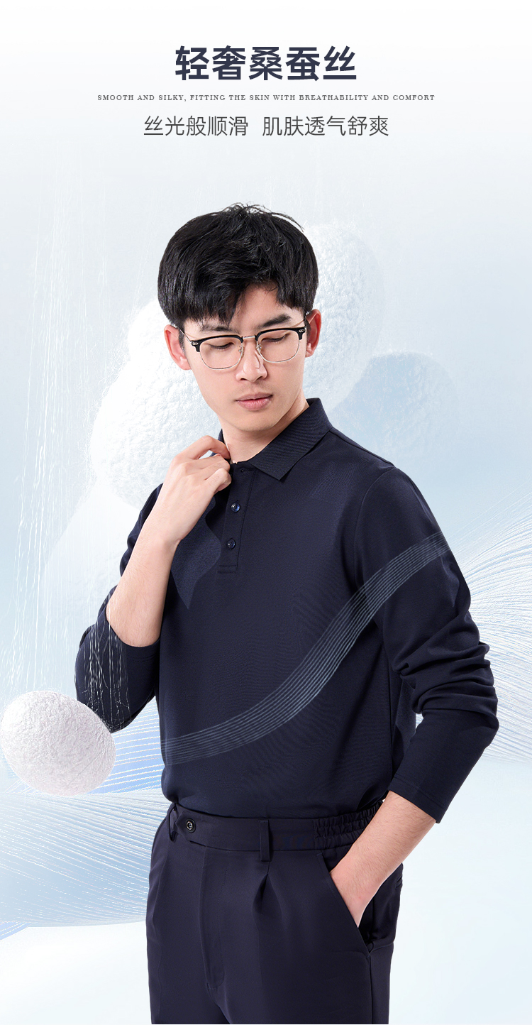【7A抑菌含桑蚕丝重磅长袖POLO衫】商务翻领T恤 休闲通勤打底上衣LT502