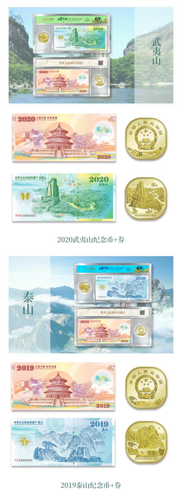 【大美中国】世界文化和自然遗产泰山、武夷山、黄山、峨眉山纪念币券套装