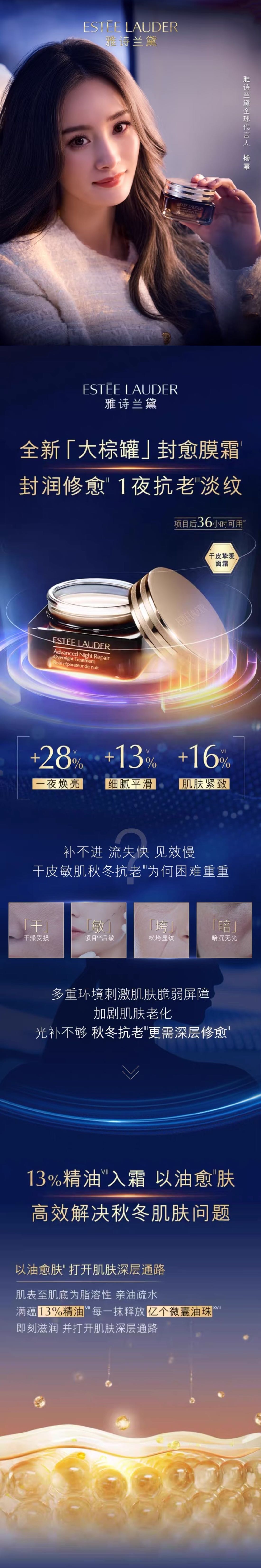 品名:雅诗兰黛大棕罐膜霜65ml✨ 原产国:加拿大 - 护肤「幂」诀 | 一瓶制胜室内干燥显纹 换季出游考验重重, 夜航途中昼夜颠倒 环境干燥,肌肤如何应对缺水显纹危“肌”? 雅诗兰黛全球代言人杨幂化身夜航专家,解锁她的出行「幂」诀 #雅诗兰黛大棕罐13%精油入霜,一抹释放亿万 微囊油珠,高效渗透滋润 。协同#全新第七代 小棕瓶 同源专利成分「律波肽」,细胞级修愈抗老,淡化纹路。 即刻Get杨幂愈肤同款「大棕罐」,无惧室内干燥,时刻嘭润细腻。 - 使用方法: 速来围观,#雅诗兰黛大棕罐独家专业使用方法 「大」教学! 让抗老事半功倍! 量肤定制用量,精准解决肌肤痛点。 1 针对干皮与混干皮,取2-3颗黄豆粒用量,封愈抗老,令肌肤水润嘭弹焕亮,年轻一夜可见; 2 针对敏感肌,取1-2颗黄豆粒用量并薄涂,强韧肌肤屏障,养出白净透亮肌; 3专业美容项目后,取4-5颗黄豆粒用量,全脸厚敷密集修愈,一抹舒缓褪红,加乘项目效果。 待产品融为精油后,搭配高定焕能按摩陀螺,全脸分区提拉按摩,促渗吸收,抗老功效再加 buff。最后轻轻按压,待产品成膜后即可入睡。 小tips: 成膜后切勿按摩揉搓哦~ 一夜焕亮+28% 根源淡褪 5 大纹路,透亮紧 致肉眼可见!00即刻解锁 #雅诗兰黛大棕罐居家也能享受沉浸式SPA,体验全脸一夜爆改! - 备案文号:国妆网备进字(沪)2024003324 产品批号:A84 包装方式:单独(无塑封) 储存方式:避免阳光照射,置于阴凉干燥处 |