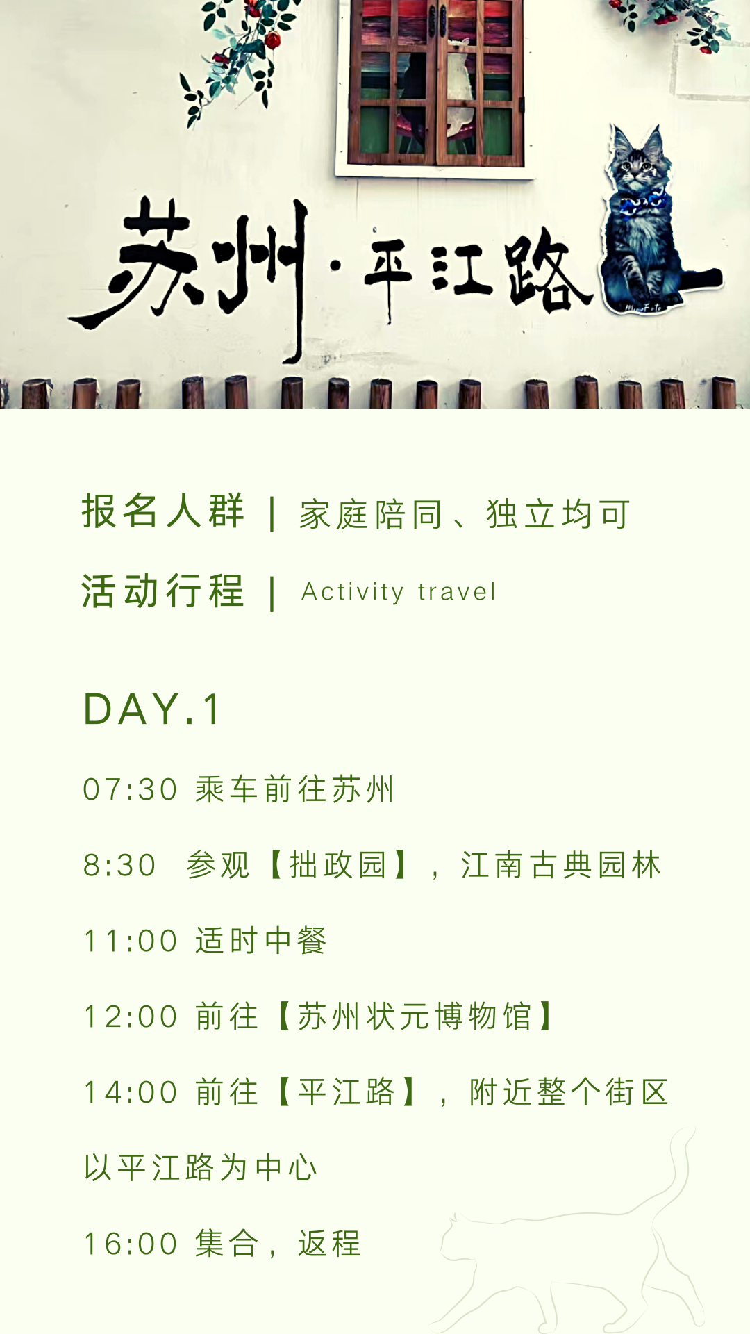 孩子志 | 苏州印象 亲子&独立 11/25(周六) 11/26(周日) 逛一逛拙政园,走一走状元博物馆,漫步平江路感受惬意生活..