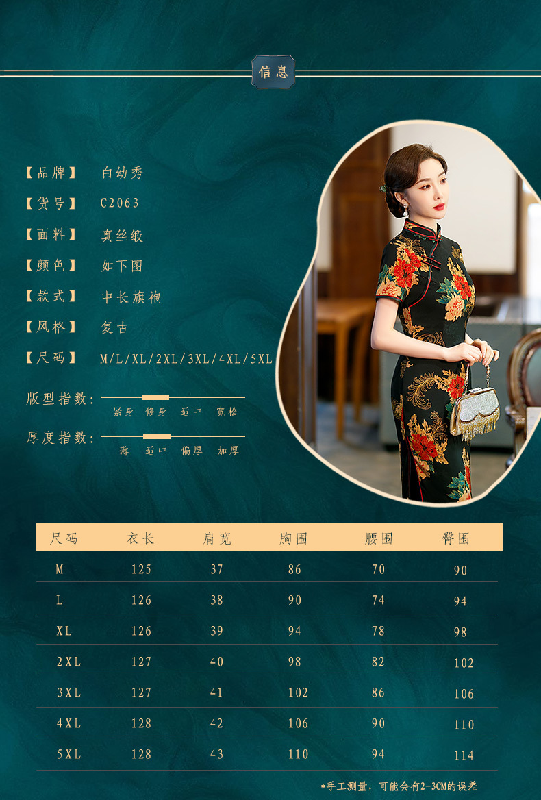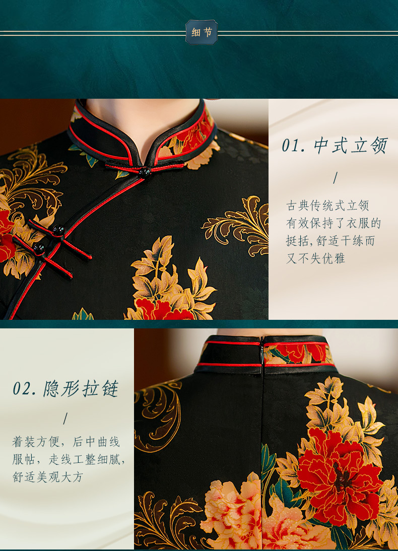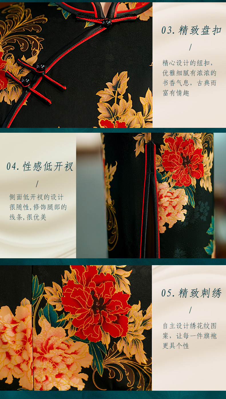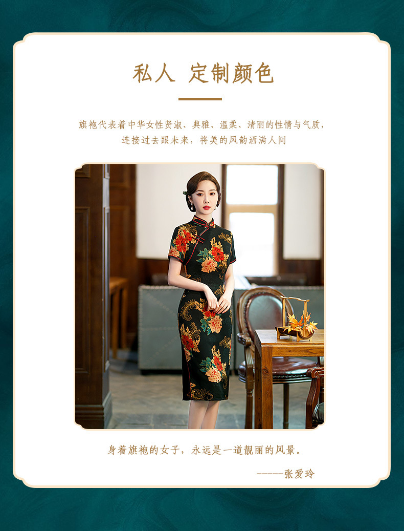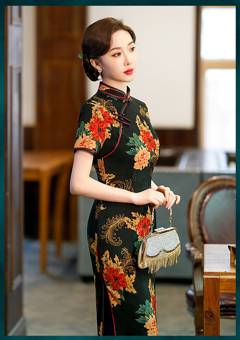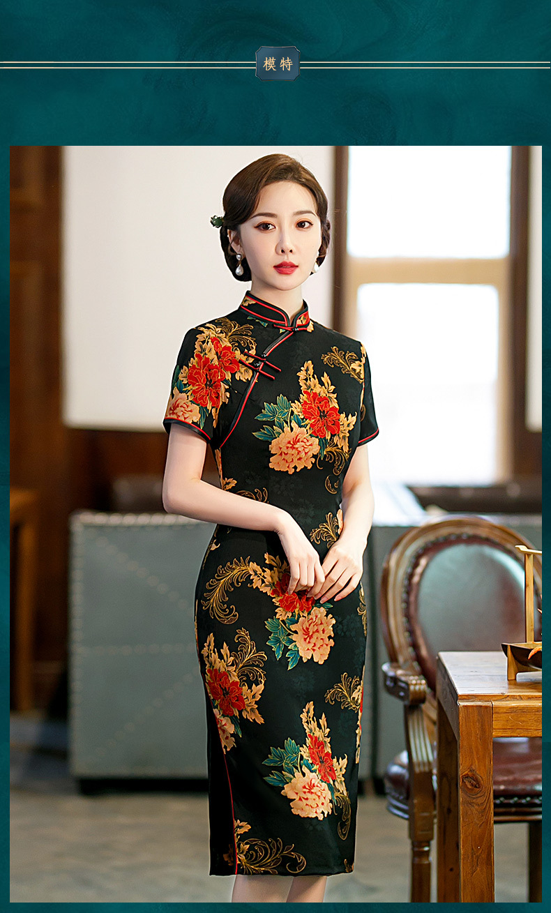 STFS-B2063新款中国风优雅气质修身立领短袖印花开叉旗袍