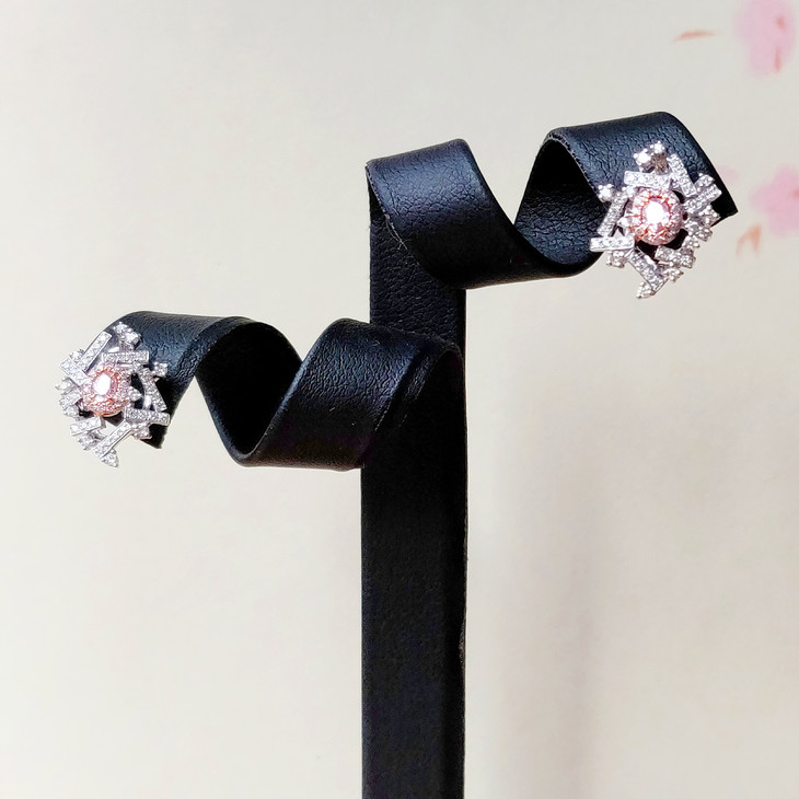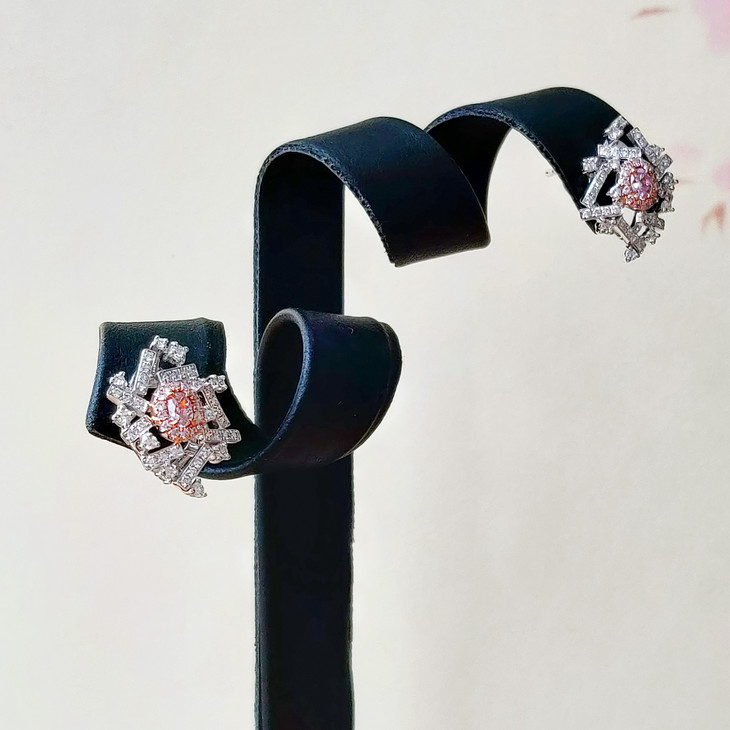 「时光碎片」粉钻钻石白金耳钉