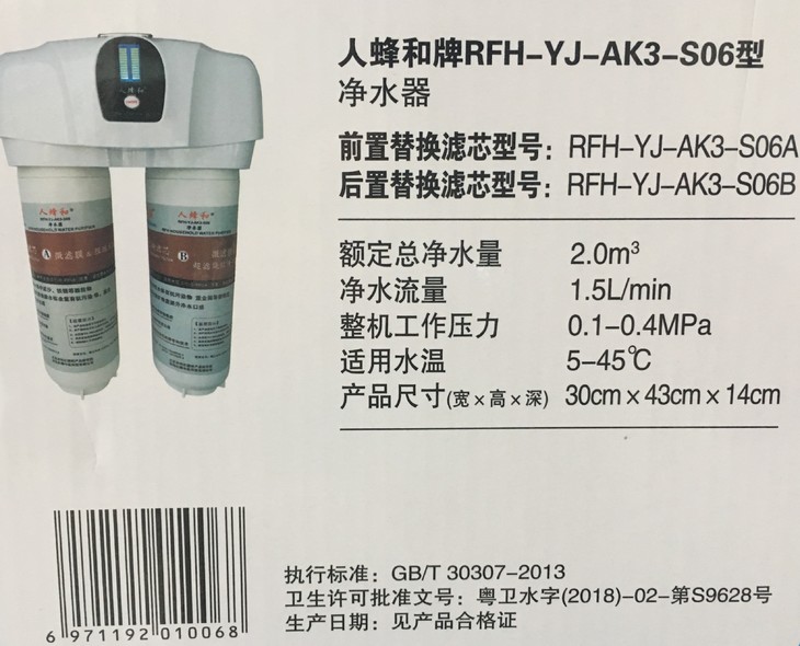 亿健 人蜂和牌RFH-YJ-AK3-S06型净水器