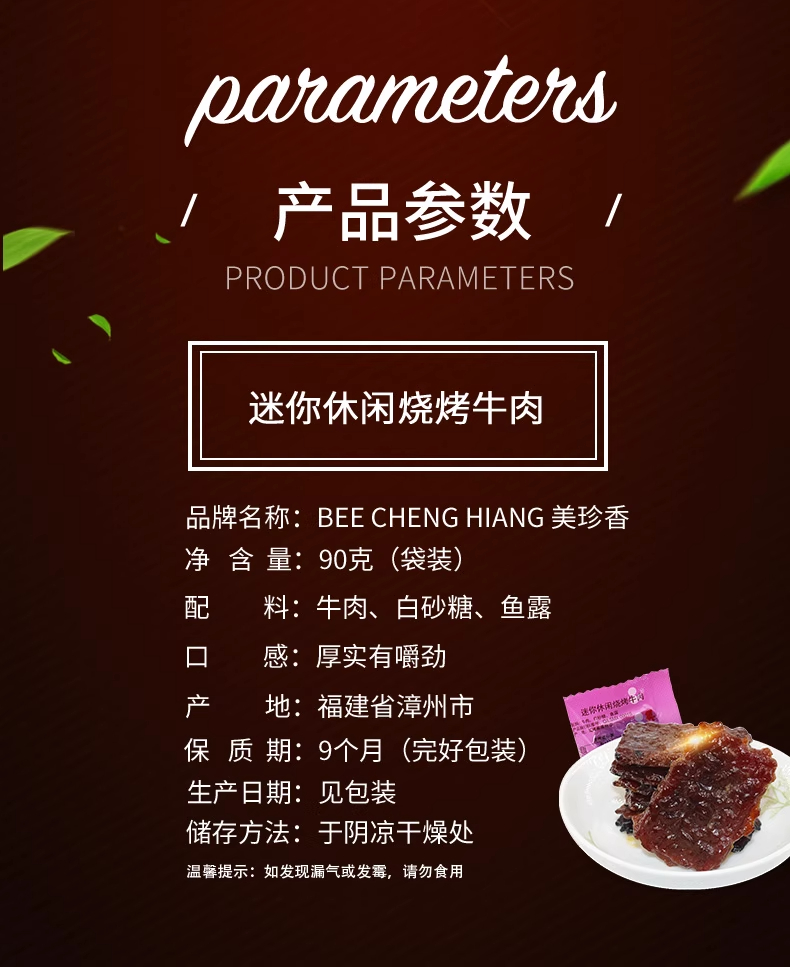 美珍香迷你休闲烧烤牛肉90g小包装零食(非牛肉脯,手工铺制牛肉)