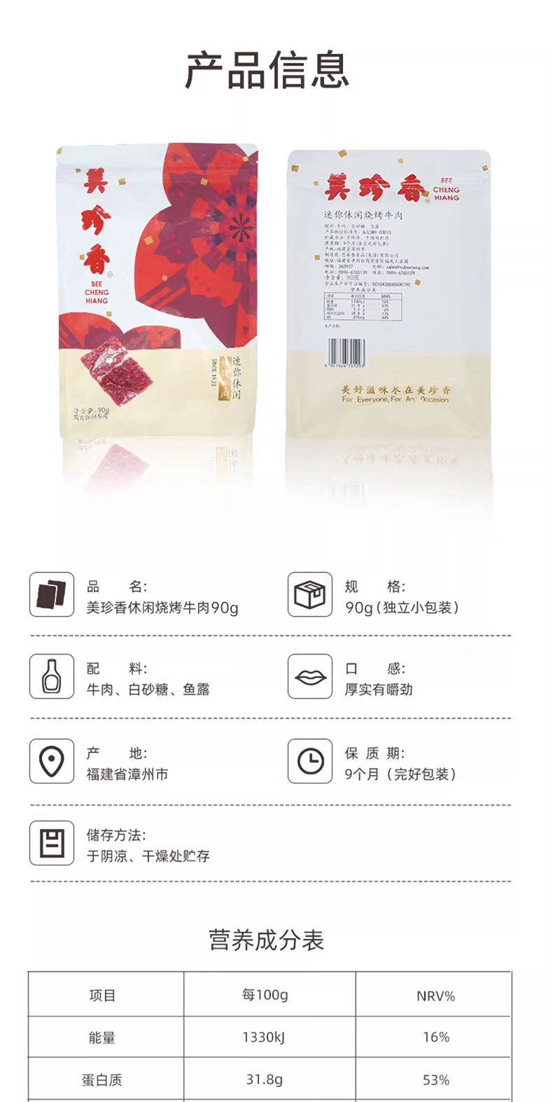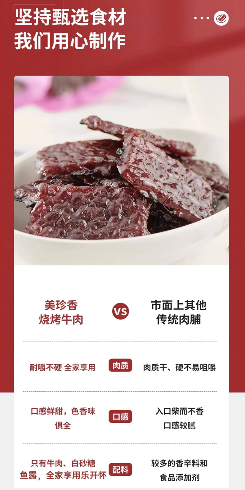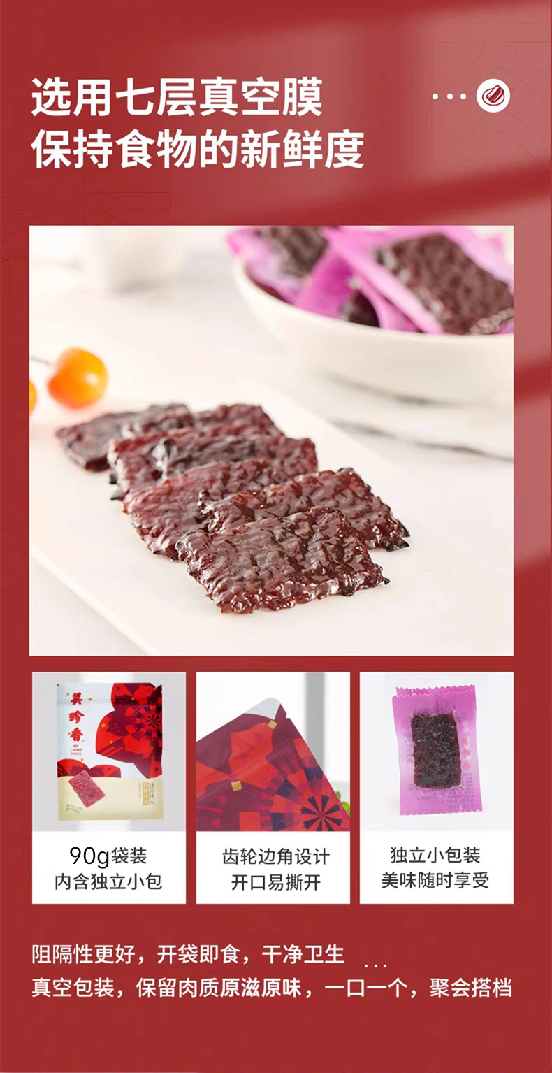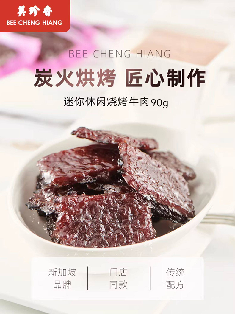 【买2送1】美珍香迷你休闲烧烤牛肉90g小包装零食(非牛肉脯,手工铺制牛肉)
