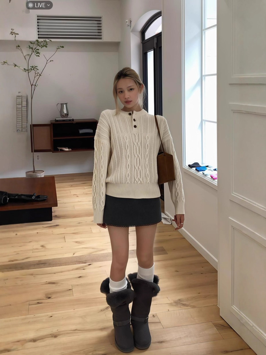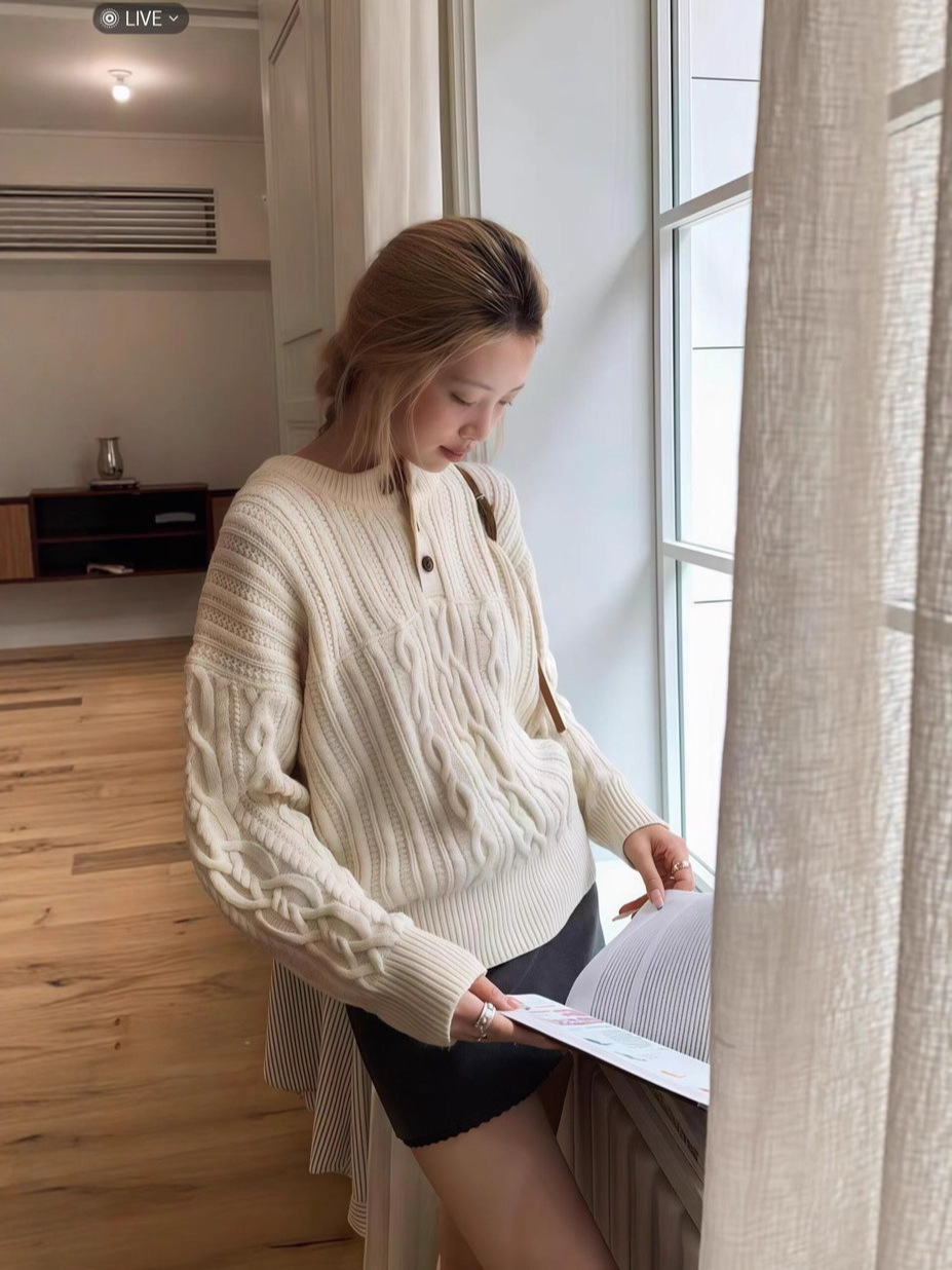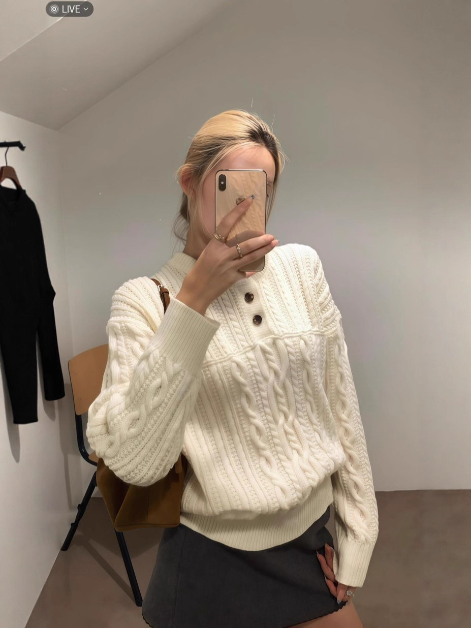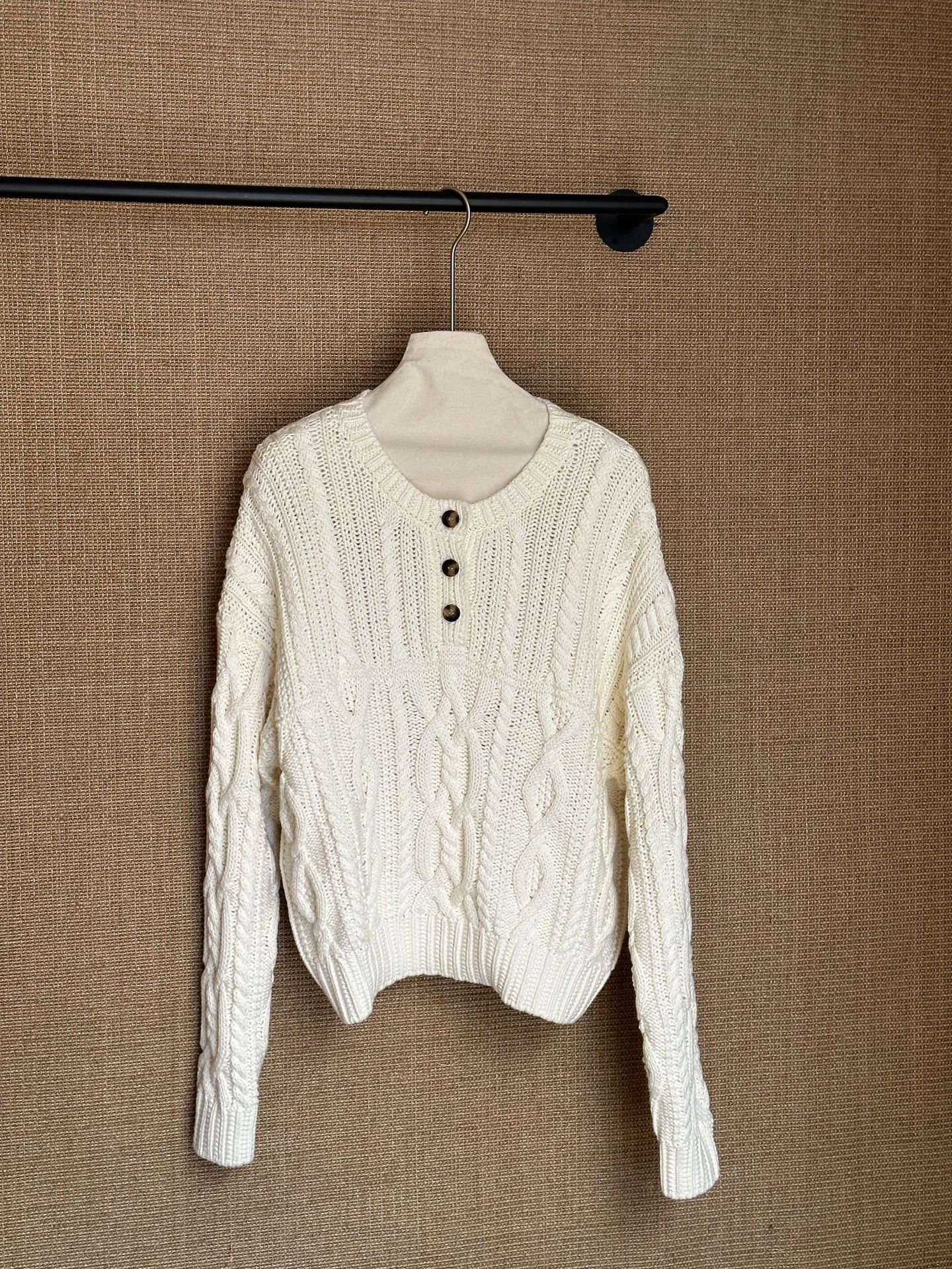 【秋冬精选】复古气质RL纽扣麻花宽松针织衫棉质毛衣