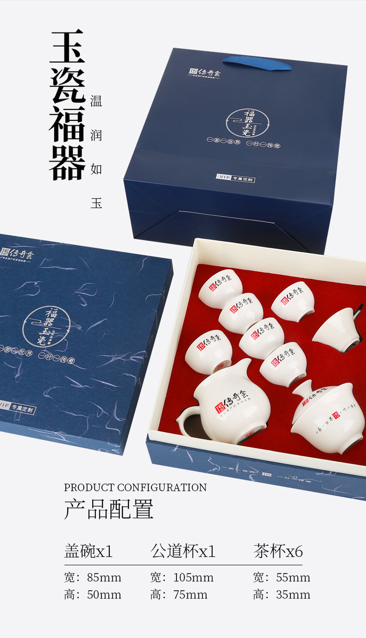 传奇会 陶瓷茶具套餐 专属定制9件套 工夫茶具冲泡神器 玉瓷福器