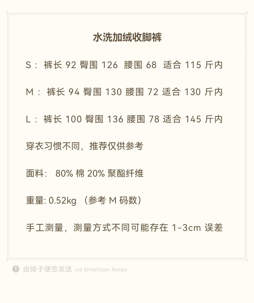 束脚设计利落不拖沓,加绒后保暖又不臃肿!