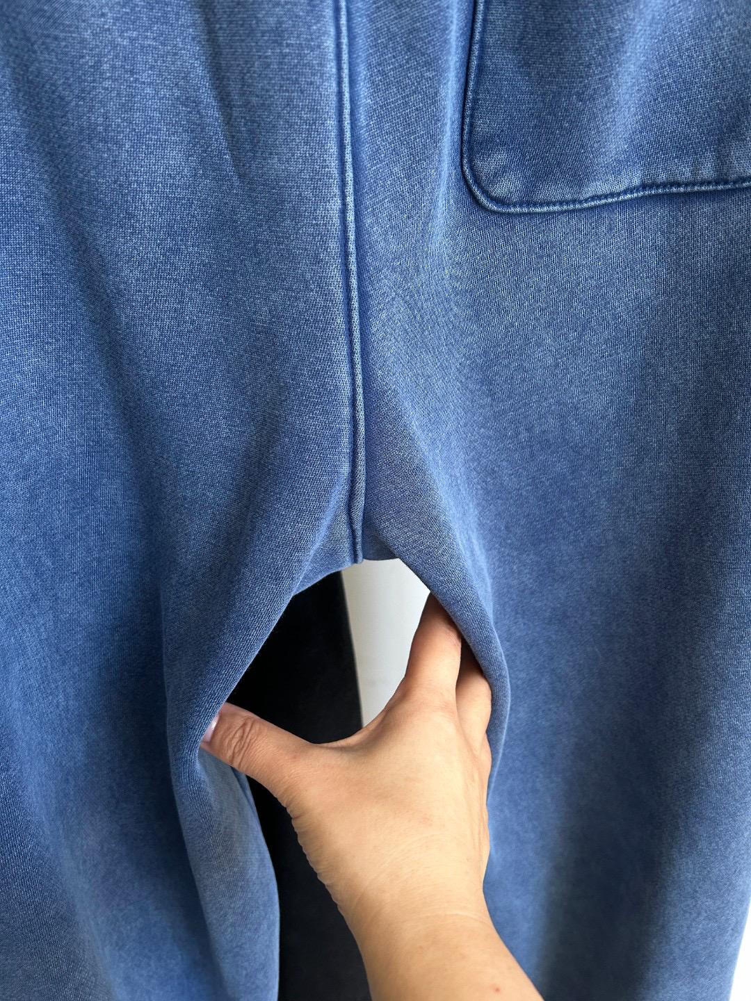 这条卫裤的套色水洗工艺,是区别于普通卫裤的核心亮点!